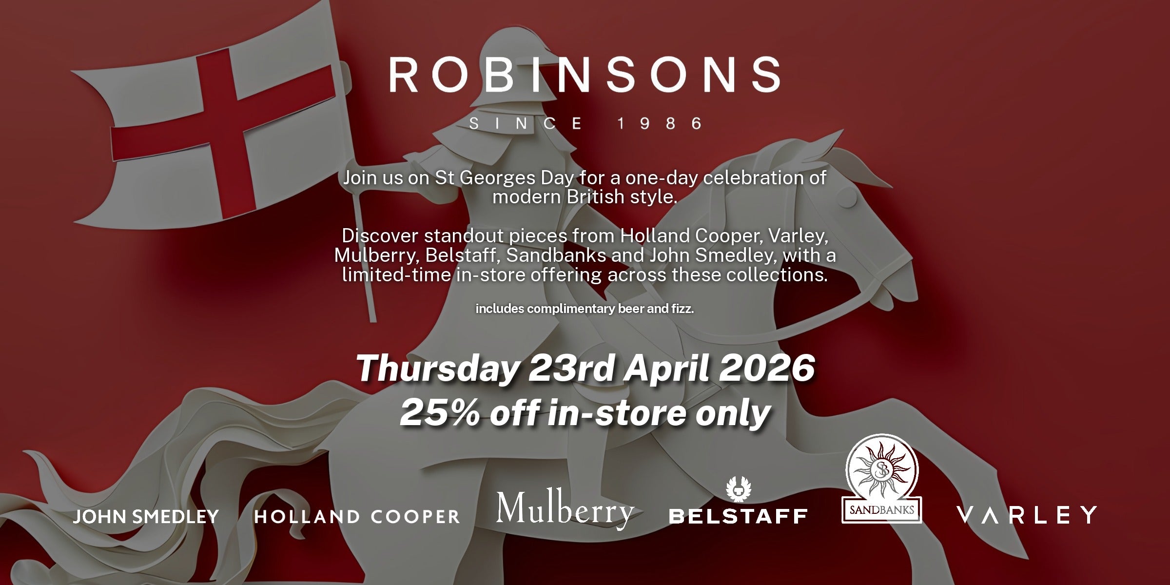 Since 1986, Robinsons of Bawtry has been a trusted destination for discerning fashion enthusiasts seeking premium men's and women's designer fashion. Our boutique offers a curated selection of luxury fashion, featuring renowned brands such as Belstaff, Sandbanks, Jacob Cohen, Mulberry, Holland Cooper, Ralph Lauren and so many more.