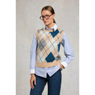 The Holland Cooper Amy Knitted Tank offers a sophisticated update to a timeless women's sleeveless jumper, crafted from a soft mohair blend that feels luxurious against the skin. Its argyle jacquard pattern and slim-fitting crew neck silhouette create a refined layering piece that transitions seamlessly from casual to elevated ensembles. Enhanced with delicate Holland Cooper embroidery at the neckline, this tank brings subtle elegance to your wardrobe.