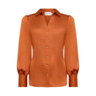 Elegant and contemporary, the Annie V-Neck Shirt brings a modern touch to a timeless silhouette. Crafted from lustrous satin for a fluid, refined drape, it features a classic collar and softly cut v-neckline that flows into a button-down front. Full gathered sleeves create a graceful shape, complemented by a V-shaped back yoke with delicate pleating for an effortlessly flattering fit. Finished with Holland Cooper’s signature touches - subtle monogram embroidery at the cuff and a gold HC pin - this piece captures understated luxury with feminine poise.