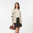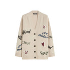 This Women's oversized cardigan is crafted from pure wool yarn and features an intarsia knit design that decorates the front and sleeves. It has a V-neckline, long sleeves with dropped shoulders, and a button fastening at the front. The edges are finished with a ribbed trim, adding a refined touch to the cozy, statement piece.