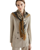 Crafted from pure wool, this shawl stands out with its bold animal-print design and subtle branded frame border. Finished with short fringes on all four sides, it adds texture and character to any outfit. Measuring 112 x 112 cm, it’s the perfect accessory to layer over neutral sweaters for an effortlessly chic, urban-inspired look.