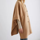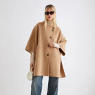 This double-faced wool-blend cape features a relaxed silhouette crafted from fine fabric for an elegant yet effortless look. Designed with a rounded neckline and visible button fastening at the front, it also includes covered press studs along the sides, allowing you to adjust the styling to suit different occasions. Practical welt side pockets add functionality, while the unlined construction keeps the design light and fluid.