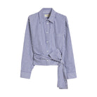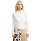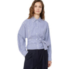 The Weekend MaxMara Fresco Long Sleeve Shirt features a feminine silhouette with a draped motif and a high sash that ties at the waist, creating a refined and flattering fit. Made from pure cotton poplin, this women's shirt offers breathable comfort and a crisp appearance. The boxy line is complemented by classic shirt collar, cuffs, and long sleeves with dropped shoulders for modern ease.