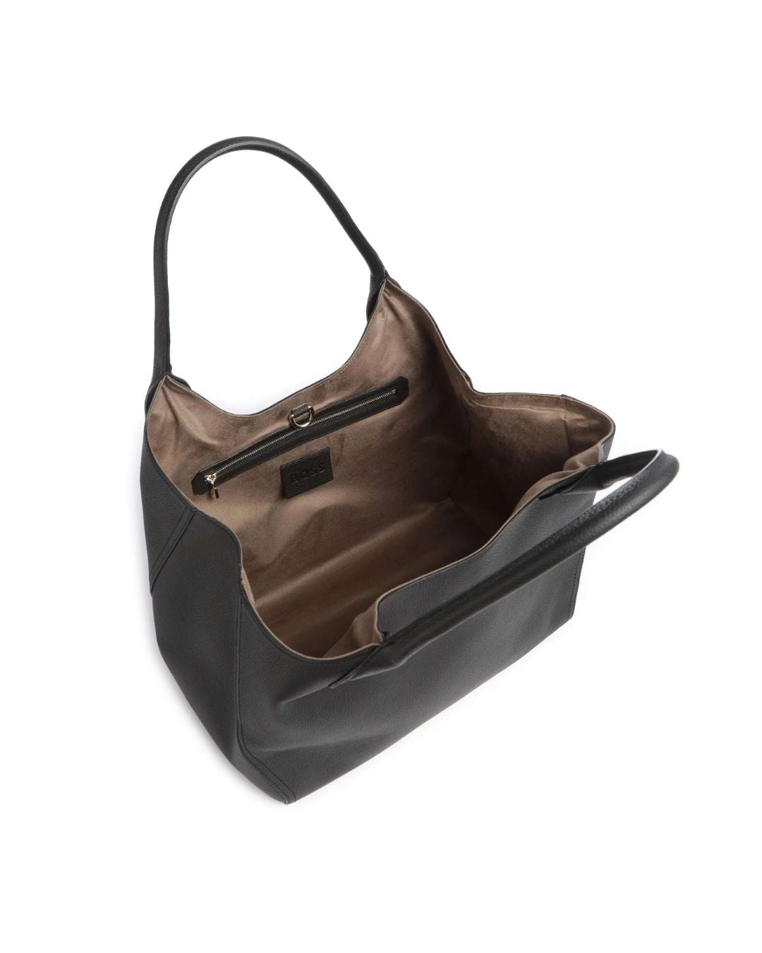 Crafted from premium pebbled leather, this elegant BOSS tote features a sleek silhouette with a spacious interior and dual top handles. Finished with a subtle gold-tone logo, it’s the perfect blend of style and function for everyday use.