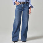 The Citizens of Humanity Loli Mid Rise Baggy Jeans sit high on the hip, showcasing an ultra-flattering top block that flows into an effortless wide leg. With a 32" inseam, it elongates the leg for a versatile look that can be easily dressed up or down.