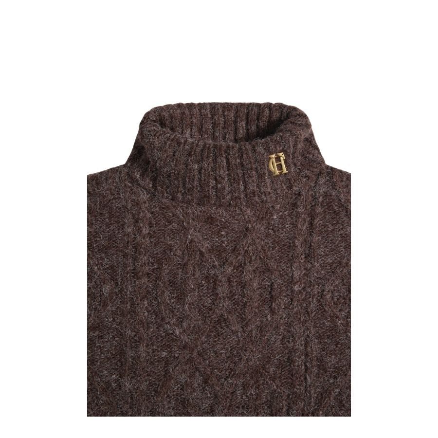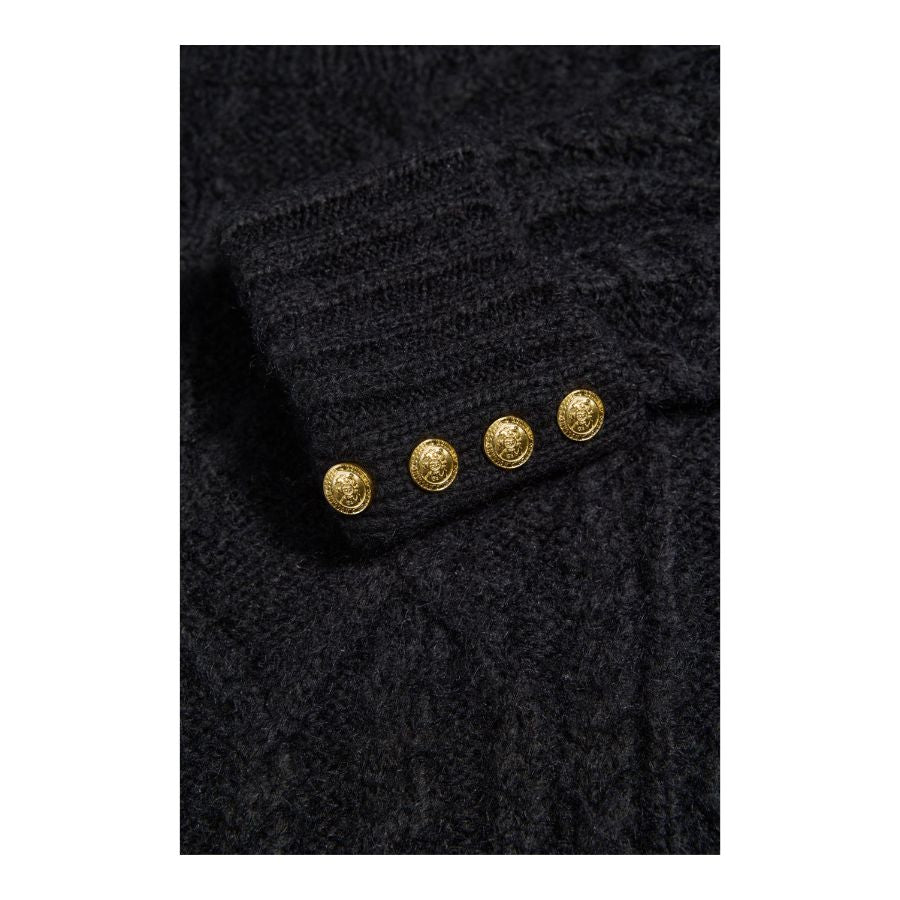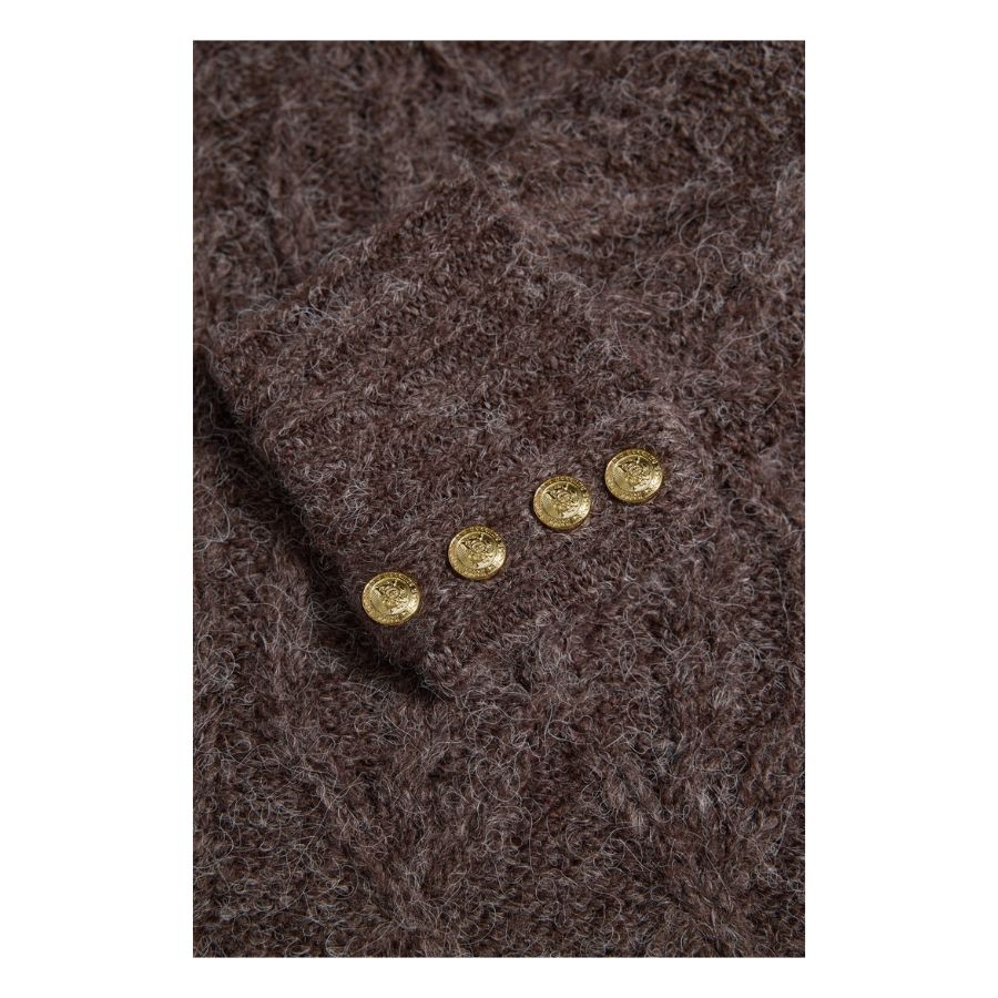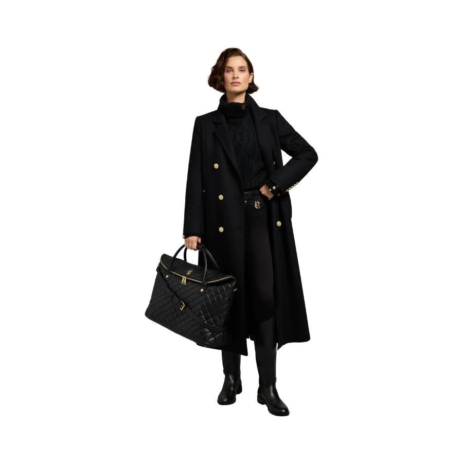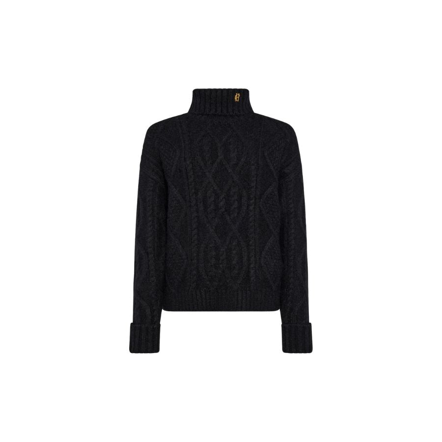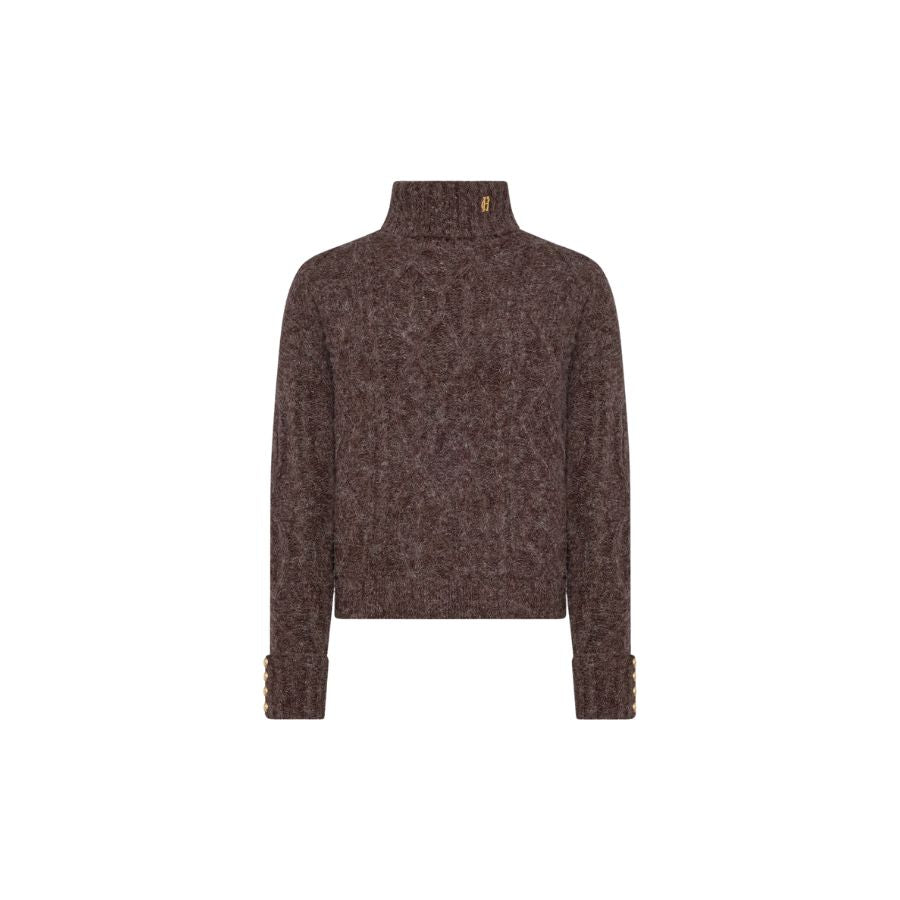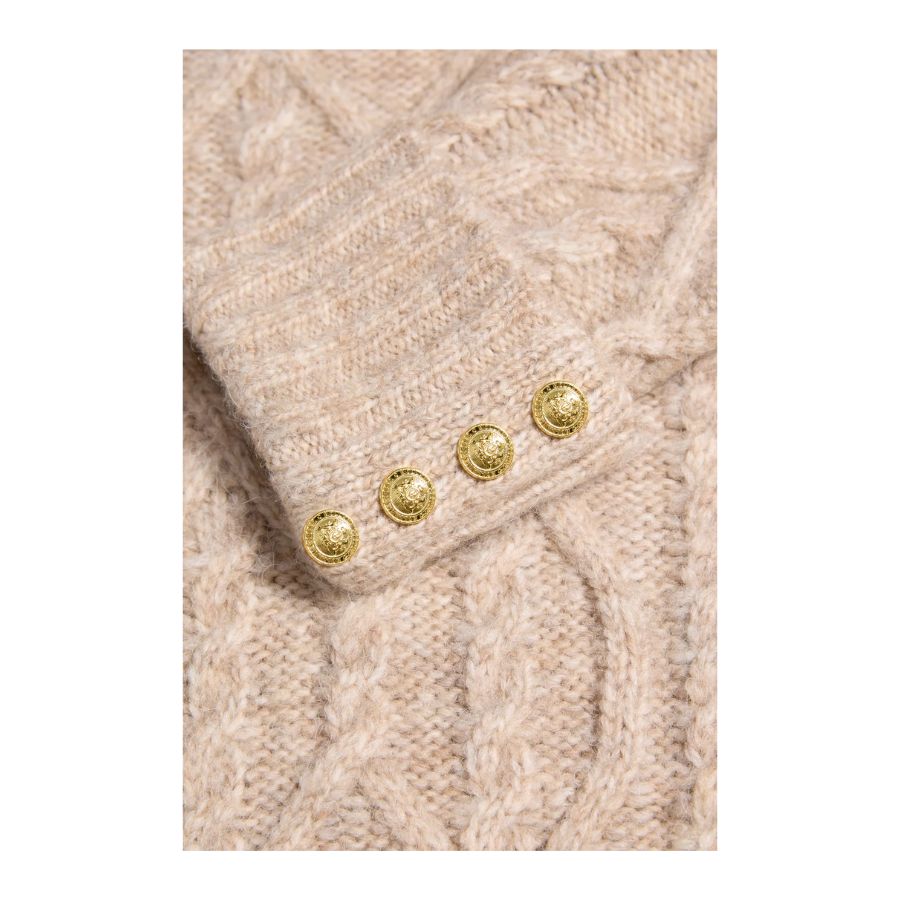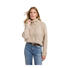This Holland Cooper Roll Neck Knit is crafted from luxuriously soft yarn with subtle multi-tonal hues, this womens roll neck knit showcases a striking cable design that adds contemporary texture and visual interest. The boxy silhouette and drop shoulders deliver an effortlessly modern aesthetic, while signature gold rivets adorning the cuffs and refined Holland Cooper hardware at the collar provide sophisticated finishing details. A versatile wardrobe essential that elevates your seasonal knitwear with understated elegance and refined craftsmanship.