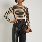 This classic striped sweater is a timeless addition to any wardrobe. Featuring a contrasting horizontal stripes, it’s crafted from soft knit fabric for a comfortable and lightweight feel. Designed with a crew neckline, long sleeves, and ribbed cuffs and hem, this versatile piece can be dressed up or down for effortless style.