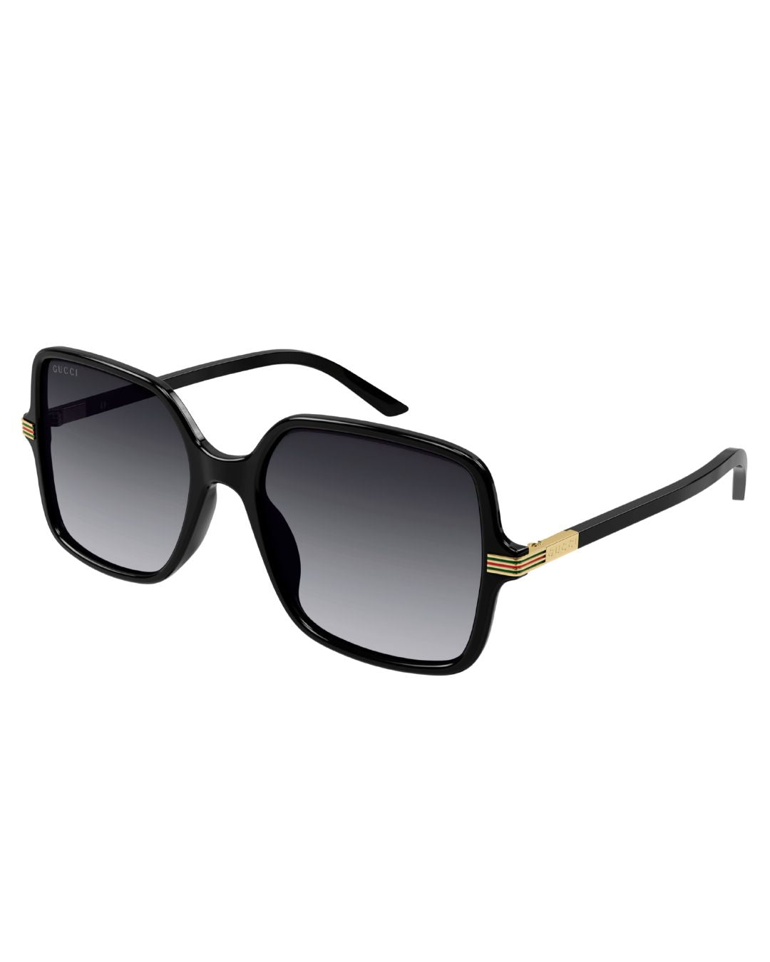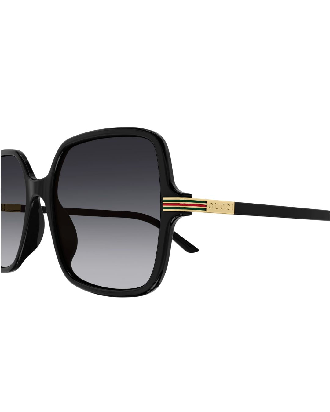 Inspired by the 70s details and look and feel, this concept replicated the web detail through an enameled metal detail on the hinge. Oversized squared shape in light acetate. The Gucci lettering logo is lasered on a metal plaque applied on the temple.