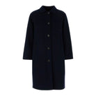 This straight-fit, long single-breasted coat is crafted from hand-sewn, double-faced pure wool broadcloth for a luxurious and structured feel. Designed with a classic shirt collar and long set-in sleeves, it features a visible button fastening at the front for a clean, tailored look. Vertical-welt side pockets add functionality, while a central rear slit ensures ease of movement and a polished finish.
