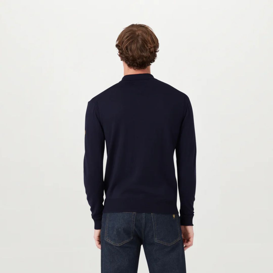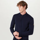 Introducing the Men's Kyle Polo, a refined essential crafted from 12-gauge extra-fine merino wool. Known for its ultra-fine fibers, this fabric offers exceptional softness and comfort. Designed in a classic polo silhouette, it’s updated with a sleek zip detail at the neckline for a modern touch.