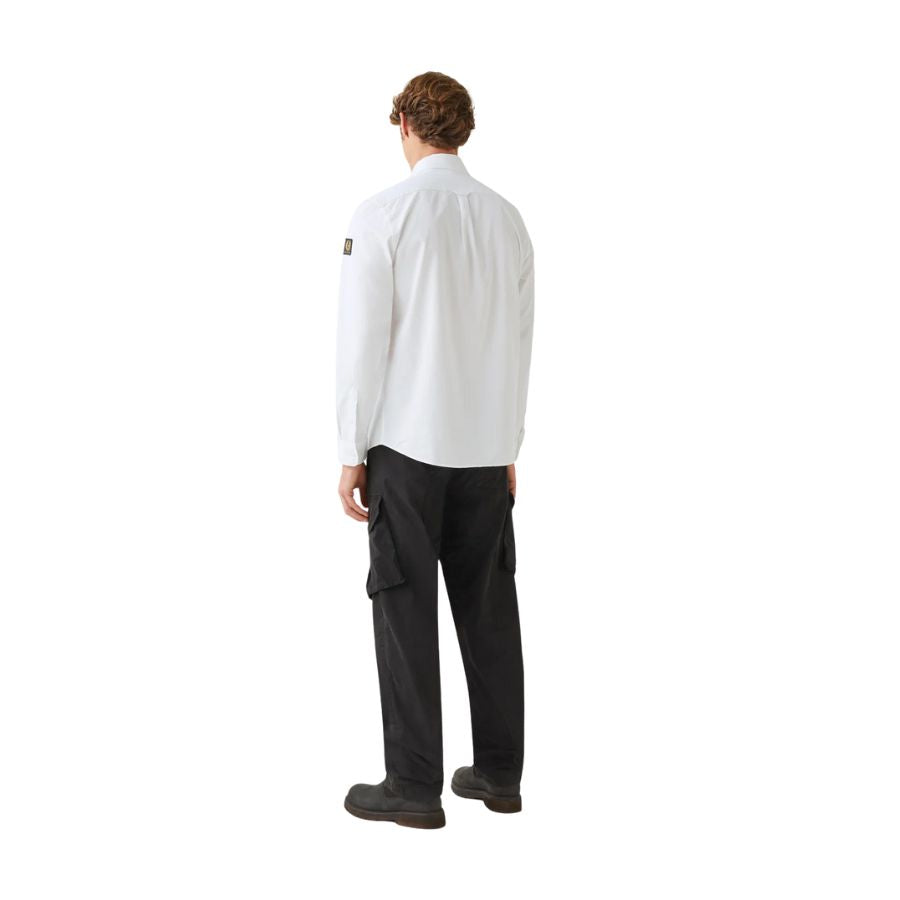 Crafted from garment-dyed cotton twill, this Scale Long Sleeve Shirt combines timeless style with practical design. The distinctive tilted bellows chest pocket features a concealed button flap for a refined silhouette, while the classic point collar and adjustable button cuff ensure a perfect fit. The iconic Belstaff phoenix patch adorns the left sleeve, marking this as a piece of genuine heritage craftsmanship. Button front closure allows effortless layering and styling versatility. An essential wardrobe staple that bridges casual comfort with understated sophistication.