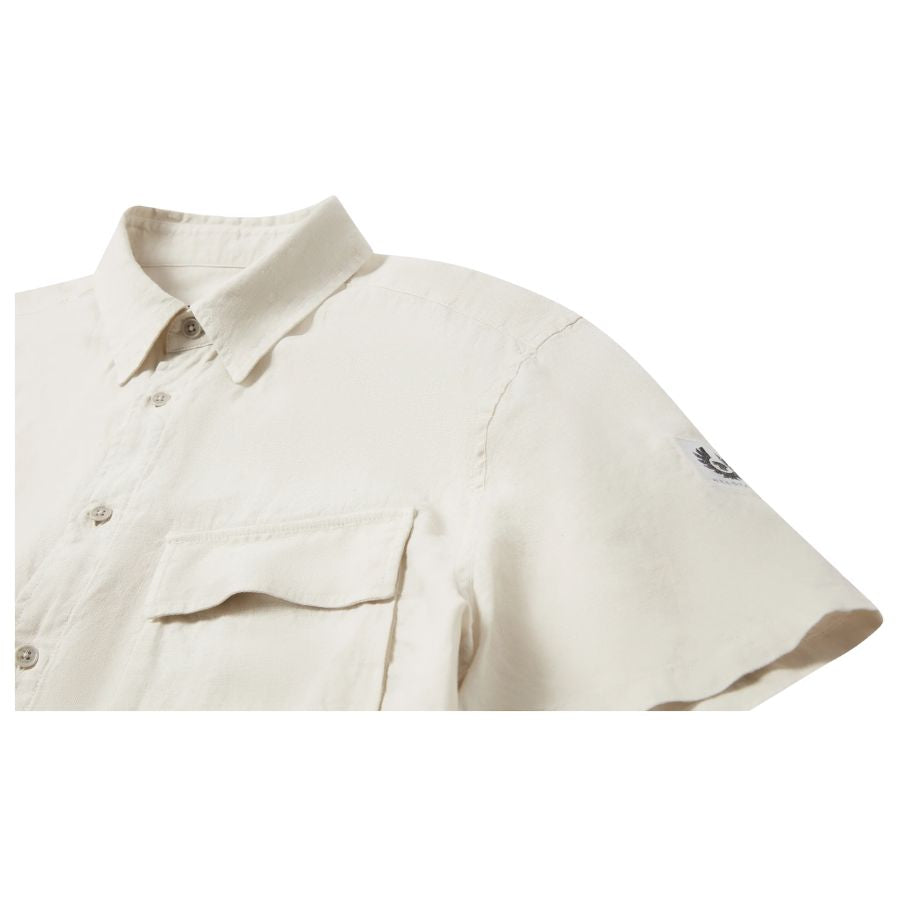 The Belstaff Scale Short Sleeve Shirt is a versatile classic, crafted from 100% garment-dyed linen for exceptional comfort and lasting quality. Featuring a timeless button-down design and a pocket to the chest, this men's shirt offers the perfect blend of style and ease.