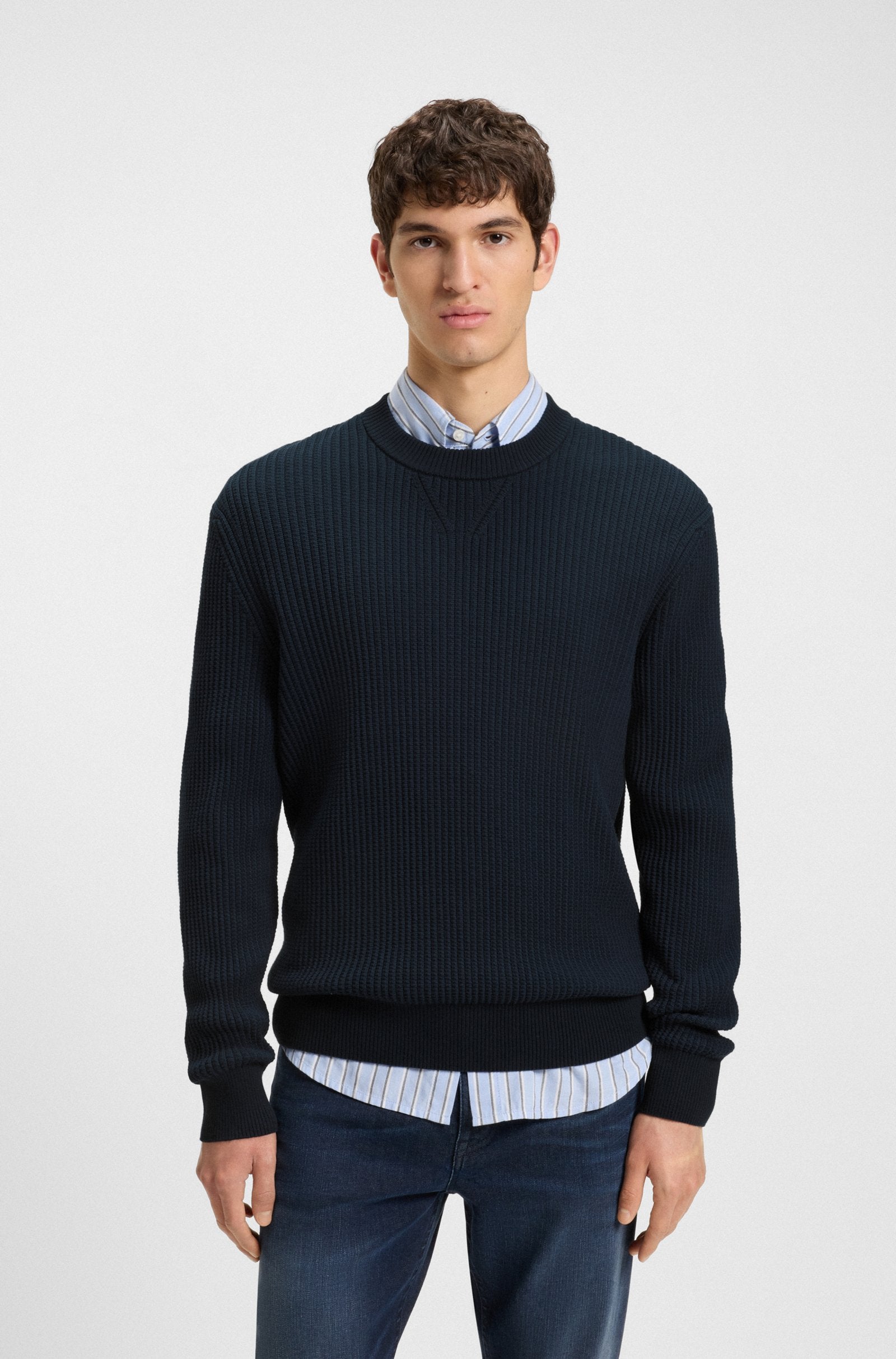 The Apokko Long Sleeve Jumper combines timeless style with modern comfort. Featuring a classic V detail at the neckline and a regular fit, this men's jumper is perfect for layering throughout the year. Its cotton-rich 3D structure provides a lightweight feel, ensuring comfort without bulk.
