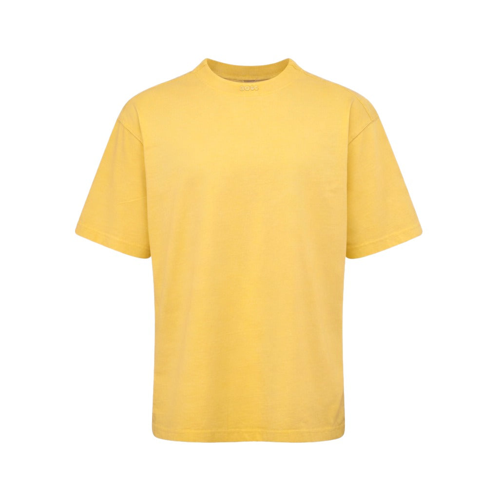 The BOSS Te Dye Relaxed Fit T-Shirt features a classic crew neck and short sleeves, designed for a refined yet relaxed look. This men's t-shirt features a raised BOSS logo at the center of the collar that adds a subtle, distinctive detail, while its unique finish elevates the overall style.
