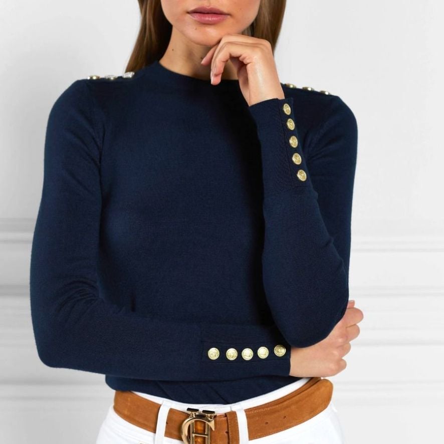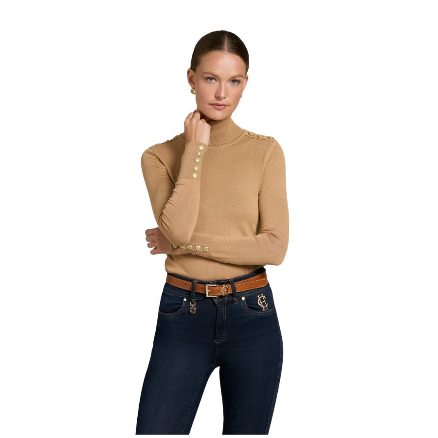 Meet HC's upgraded buttoned knit crew neck featuring our signature hardware on both shoulders, seamlessly integrating into your signature style. Elevate every outfit with this stylish, classic, and effortlessly wearable wardrobe essential.