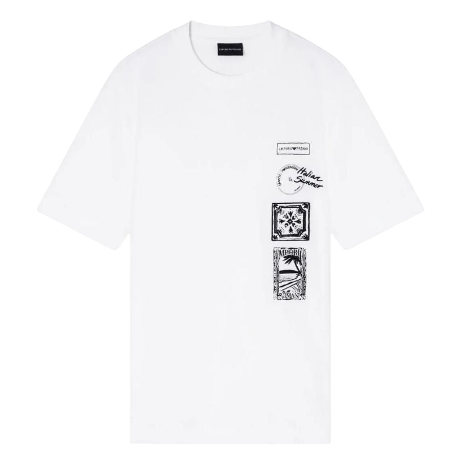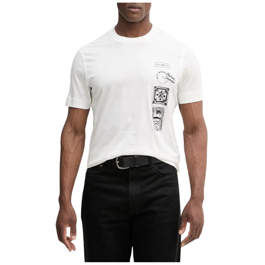 This classic Emporio Armani short-sleeve t-shirt is crafted with precision and style, this piece features Emporio Armani pattern on the front, delivering understated luxury with a contemporary edge. The regular fit ensures comfortable all-day wear, whether dressed up or down. Perfect for layering or wearing solo, this versatile essential combines quality construction with timeless design—a wardrobe staple from one of Italy's most respected fashion houses.