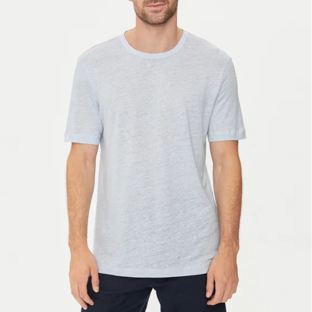 Experience all-day comfort and style with this crew-neck T-shirt by BOSS Menswear. Cut to a regular fit, it’s crafted from soft, breathable linen that’s perfect for warm weather or layering under jackets. The lightweight fabric offers natural ventilation, while the refined design features a discreet logo-flag trim at the side, lending a touch of iconic BOSS branding. Ideal for both casual and smart-casual looks, this T-shirt combines sophistication with effortless wearability, making it a versatile essential in any modern wardrobe.