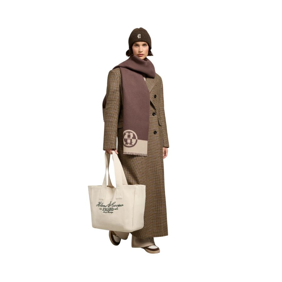 Elevate your cold-weather wardrobe with this sophisticated Holland Cooper Jacquard Scarf, showcasing a curated seasonal colour palette that complements any ensemble. This women's Holland Cooper Scarf is woven from premium soft yarn, it delivers a refined, smooth finish that drapes beautifully. The distinctive HC branding adds a confident statement detail, whilst its versatile design makes it the perfect layering piece for effortless, polished styling throughout the season.