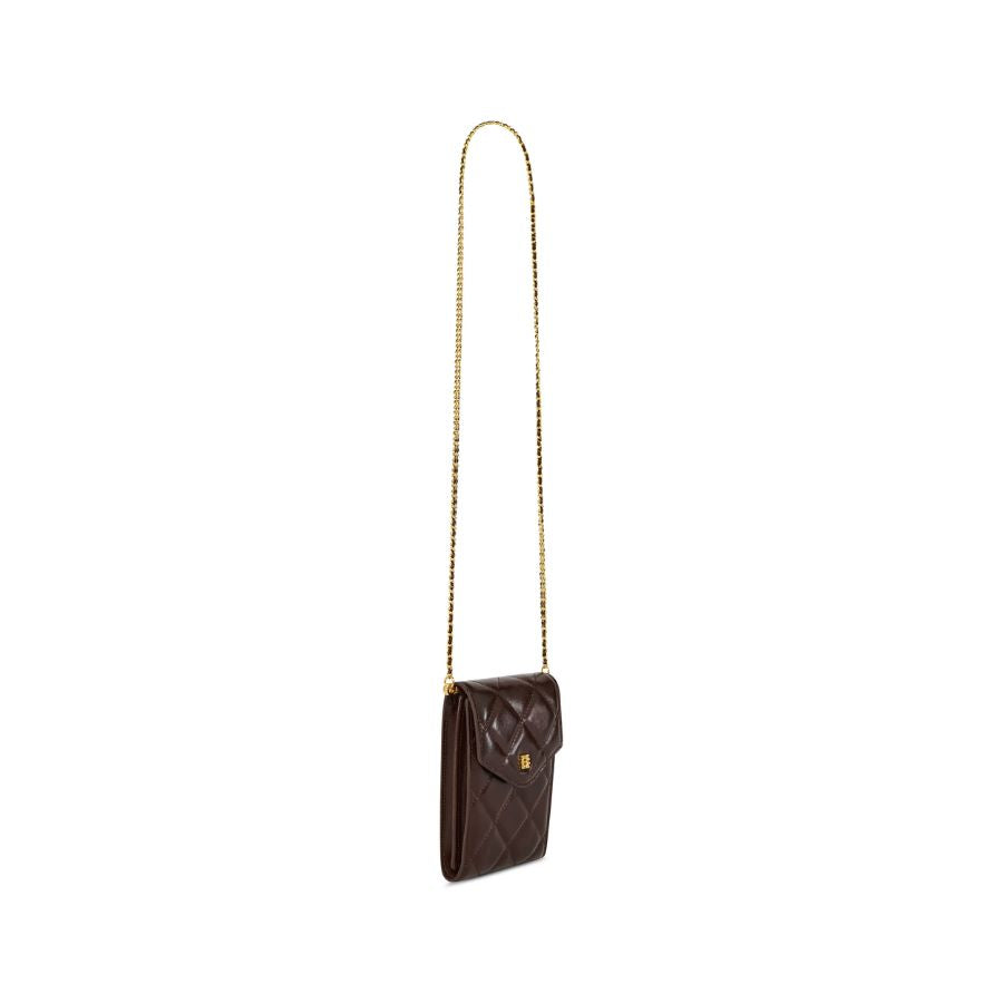 Embrace seasonal elegance with the Knightsbridge Quilted Phone Pouch, rendered in sumptuous autumnal hues. This women's Holland Cooper phone pouch is crafted from premium quilted leather, this refined accessory features our signature gold HC branding and arrives with a detachable leather-trimmed gold chain for versatile wear. A robust magnetic closure secures your essentials at the front, whilst a discreet rear zip pocket adds practical storage. The perfect marriage of understated luxury and everyday functionality.