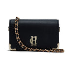 Crafted from premium textured leather with a suede interior, this piece offers versatility with a detachable chain strap for clutch or shoulder wear. Its petite size features elegant curved corners, signature gold hardware, and a magnetic closure adorned with the iconic HC monogram.