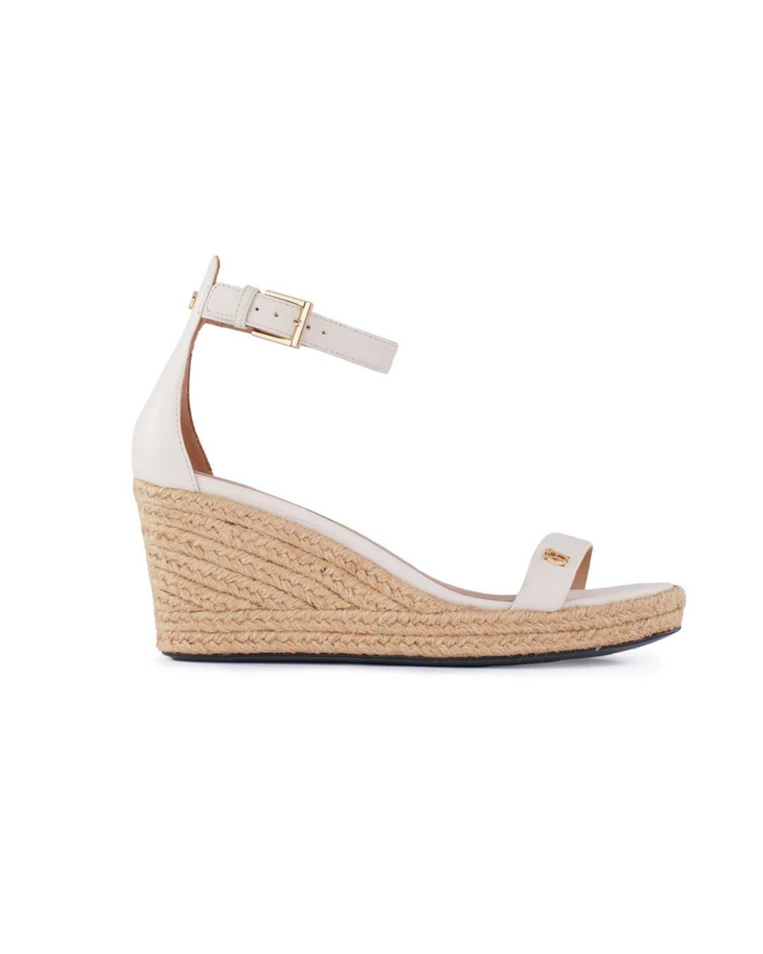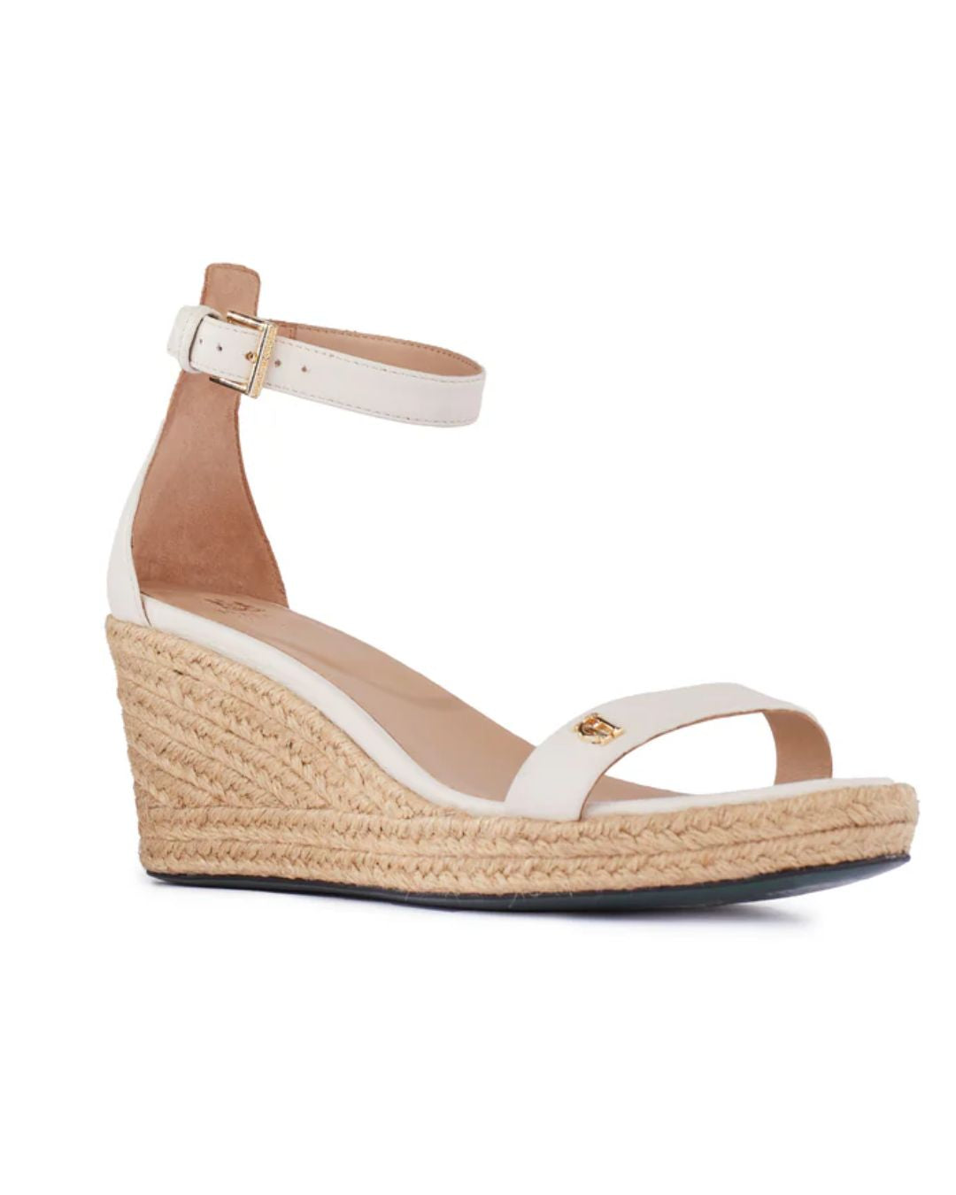 This timeless silhouette blends elegance and comfort, crafted entirely from premium leather and accented with our signature gold HC heel rivet. A classic jute-wrapped wedge adds a touch of tradition, elevating the refined design. The lightweight sandal is finished with a distinctive branded mini ankle buckle, offering a perfect mix of sophistication and versatility. A must-have for your summer wardrobe, it's sure to become your favorite for any occasion.