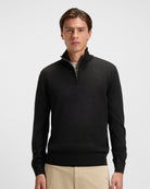 A versatile wardrobe essential, this 1/4-zip sweater combines modern style with everyday comfort. Designed with a high ribbed collar, it features a sleek quarter-zip fastening for easy layering and a refined finish. The clean silhouette is balanced with ribbed cuffs and hem to ensure a perfect fit. Ideal for smart-casual looks, this sweater pairs effortlessly with tailored trousers or denim.