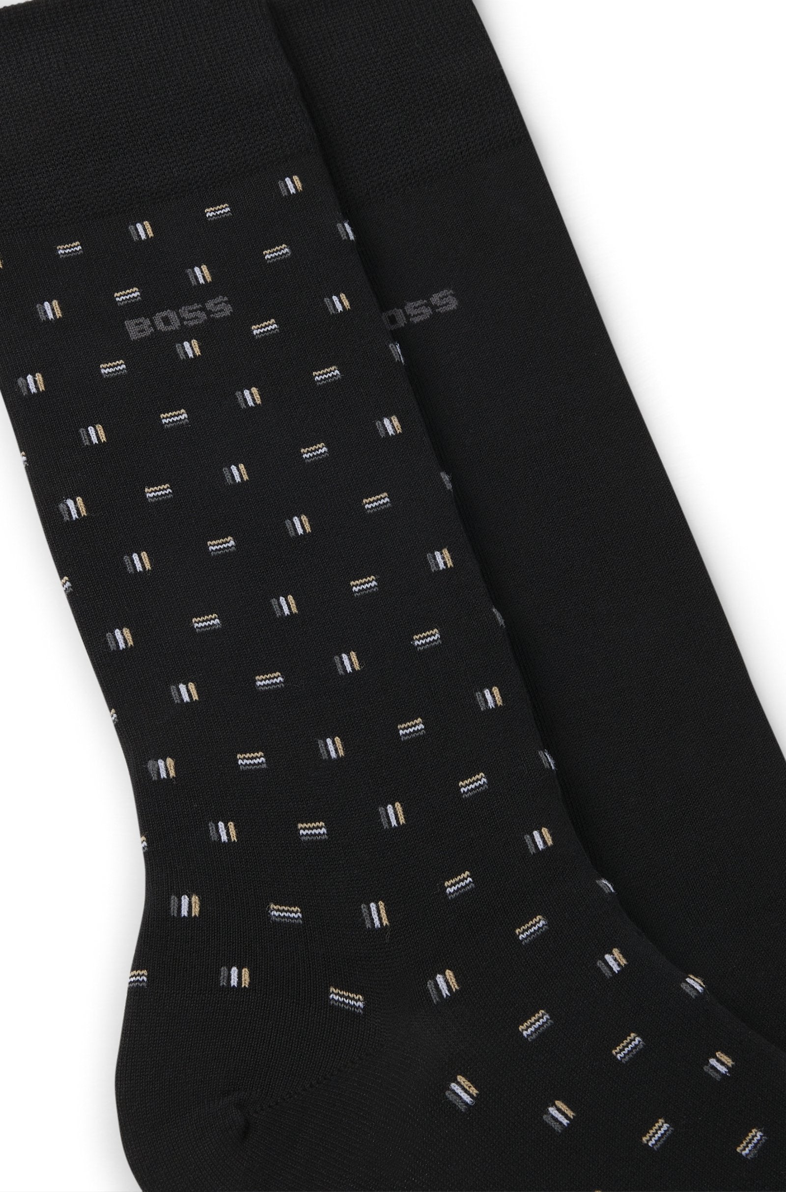 These BOSS regular length men's socks combine comfort and durability with mercerized cotton for extra strength and softness. The pack includes two pairs featuring subtle logos - one plain and one patterned - perfect for everyday wear.