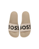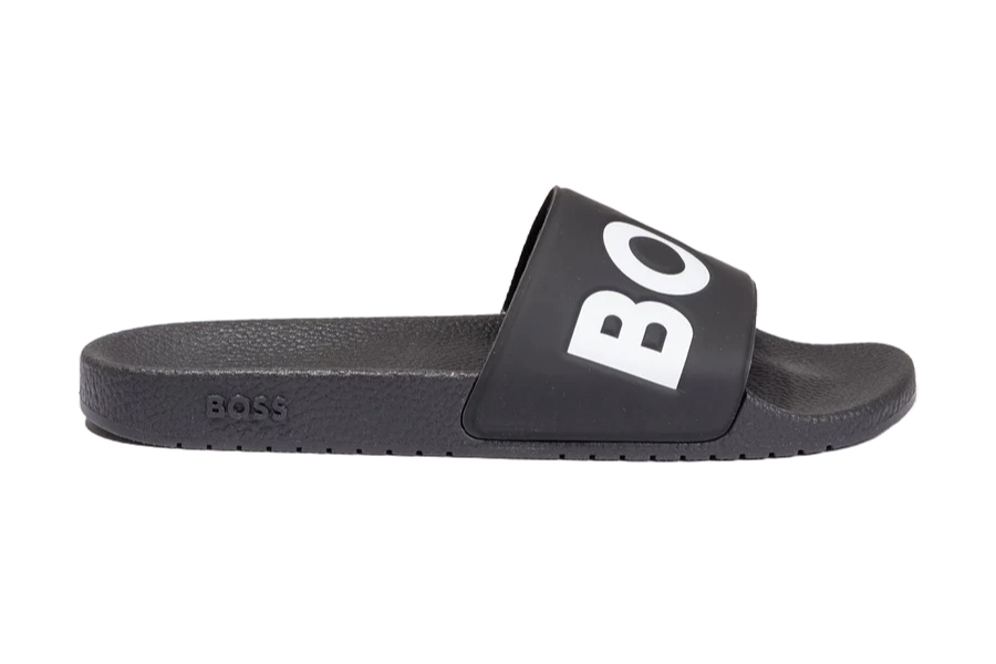 Signature slides from BOSS Menswear, expertly crafted in Italy. Designed for summer comfort, these lightweight slides feature a bold BOSS logo across the upper for a statement finish.