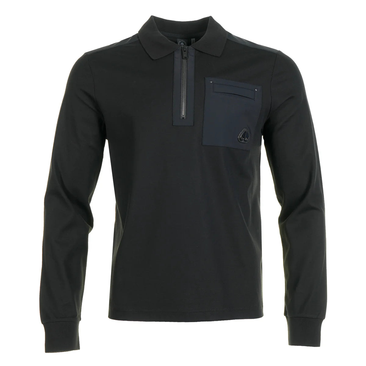 The Moose Knuckles Dalon Polo Shirt features a long-sleeve design with a zip neck, crafted from breathable pique cotton with sleek nylon details. Finished with a chest pocket and signature metal branding for a refined, sporty look.