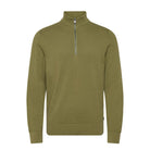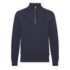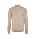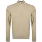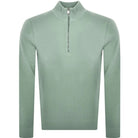 BOSS Ebrando Half Zip Knit Jumper. An all over woven textured knit design with a branded half zip opening at the neck in high shine silver. A ribbed knit stand up collar with ribbed knit cuffs on the long sleeves and a ribbed knit waistband.