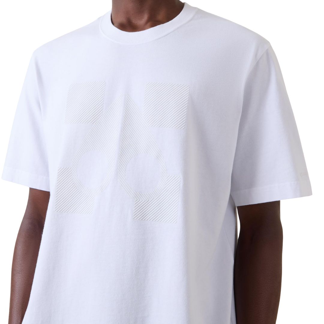 This short-sleeve T-shirt features a bold tonal graphic on the chest, adding a modern edge to a classic silhouette. Crafted from soft, breathable cotton, it offers a comfortable regular fit with a ribbed crew neckline for a clean finish. Perfect for elevating casual outfits with a subtle yet distinctive design.