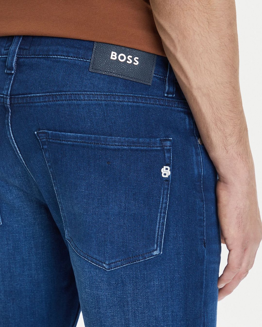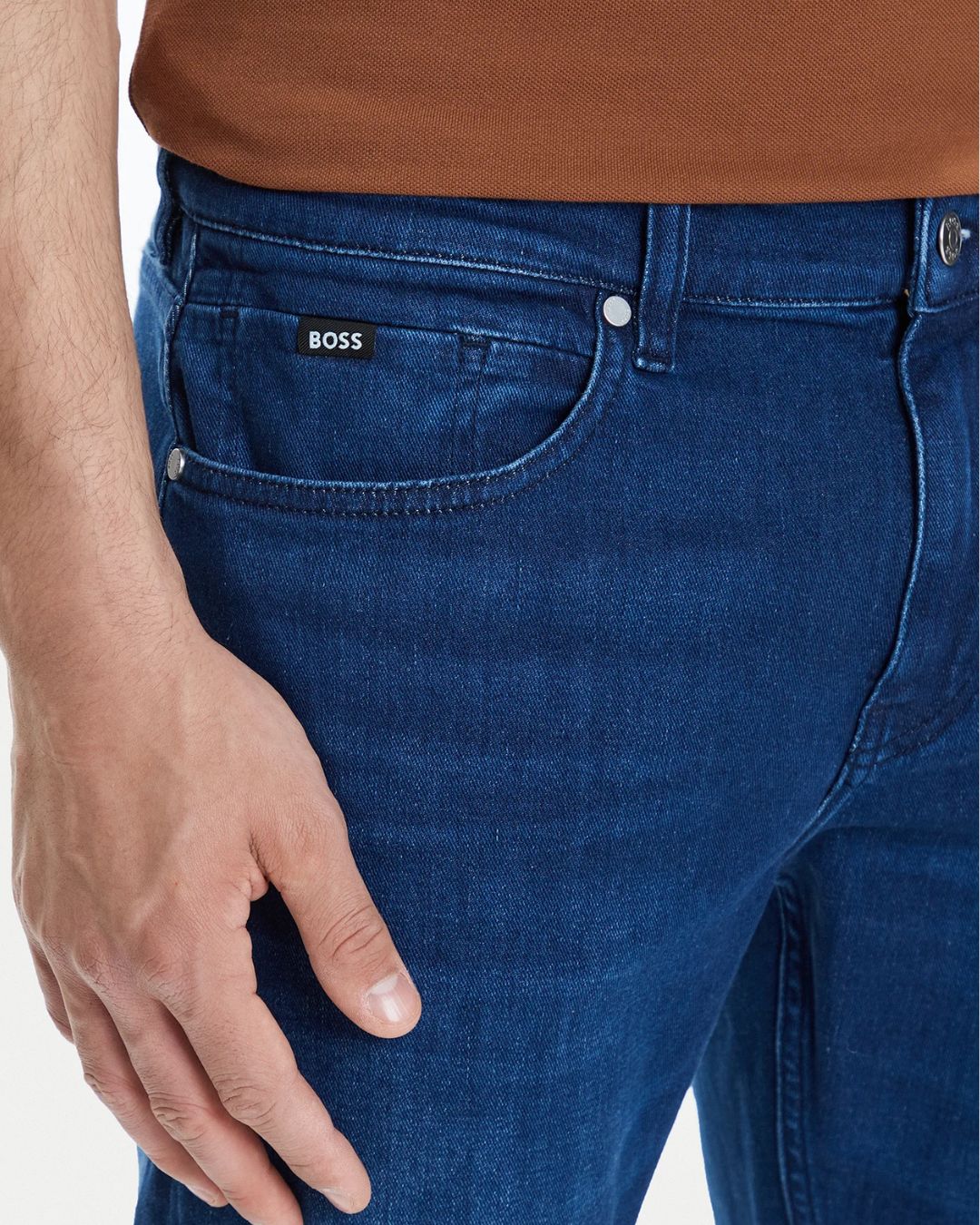These BOSS men's slim-fit jeans in mid blue offer a modern, streamlined look with subtle fading for a touch of character. Made from a comfortable stretch denim blend of 94% cotton and 6% elastane, they feature a classic five-pocket design and discreet logo detailing, making them a versatile choice for smart-casual dressing.