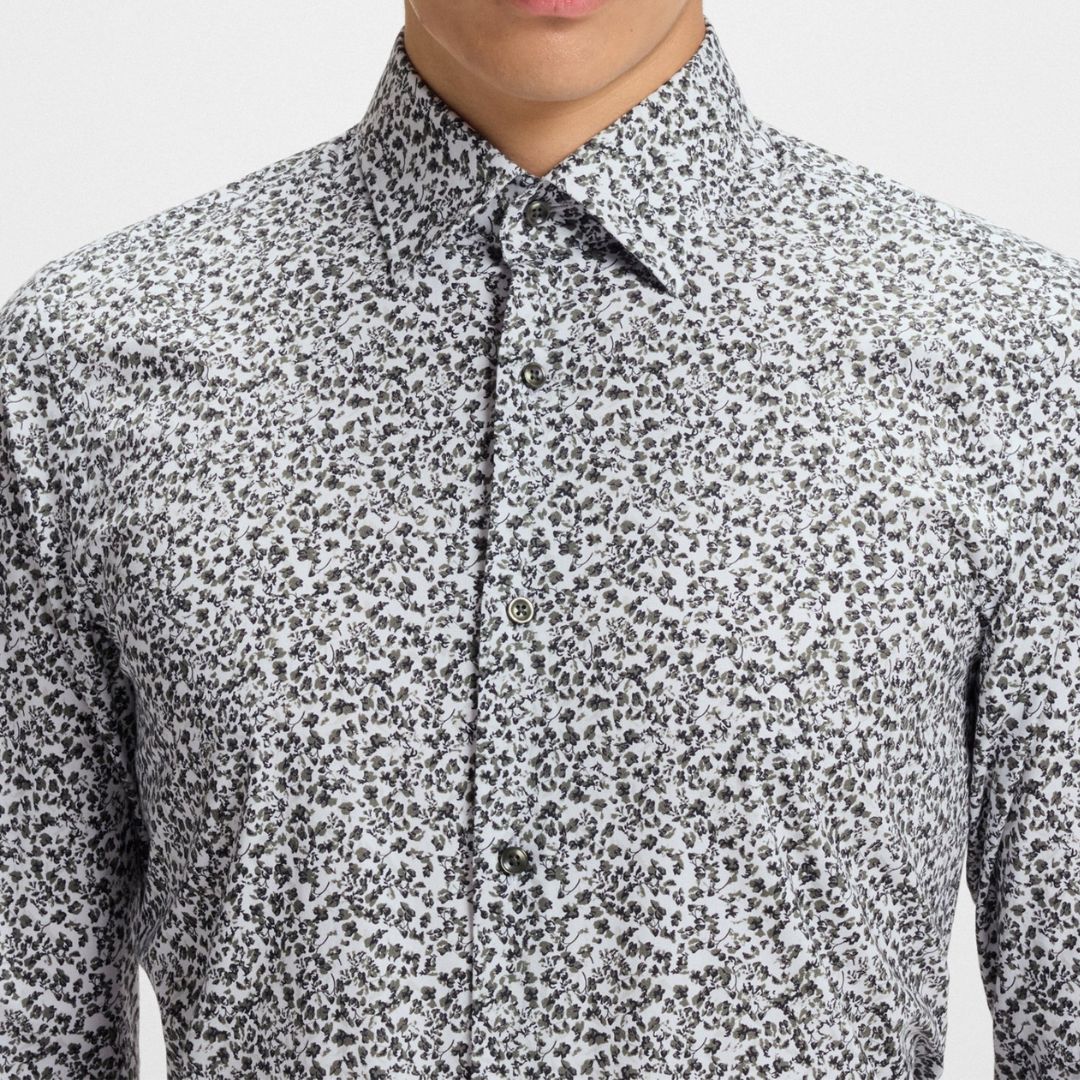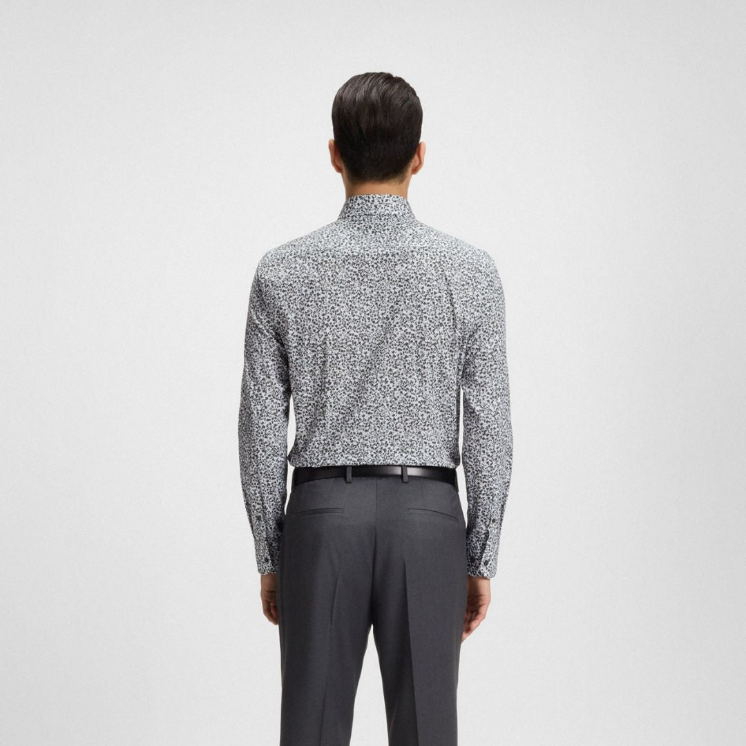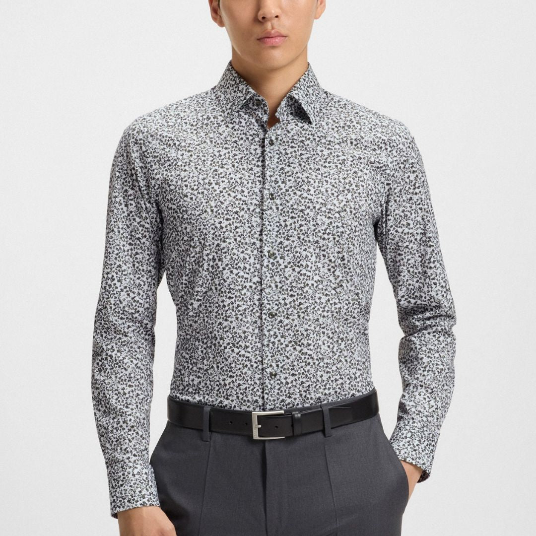 This BOSS Menswear shirt features a modern slim fit and a contemporary all-over floral print, offering a fresh and stylish look. Crafted from soft poplin made with stretch cotton, it ensures comfort and ease of movement. The design is finished with a classic Kent collar and rounded cuffs, making it a refined choice for both smart and casual occasions.