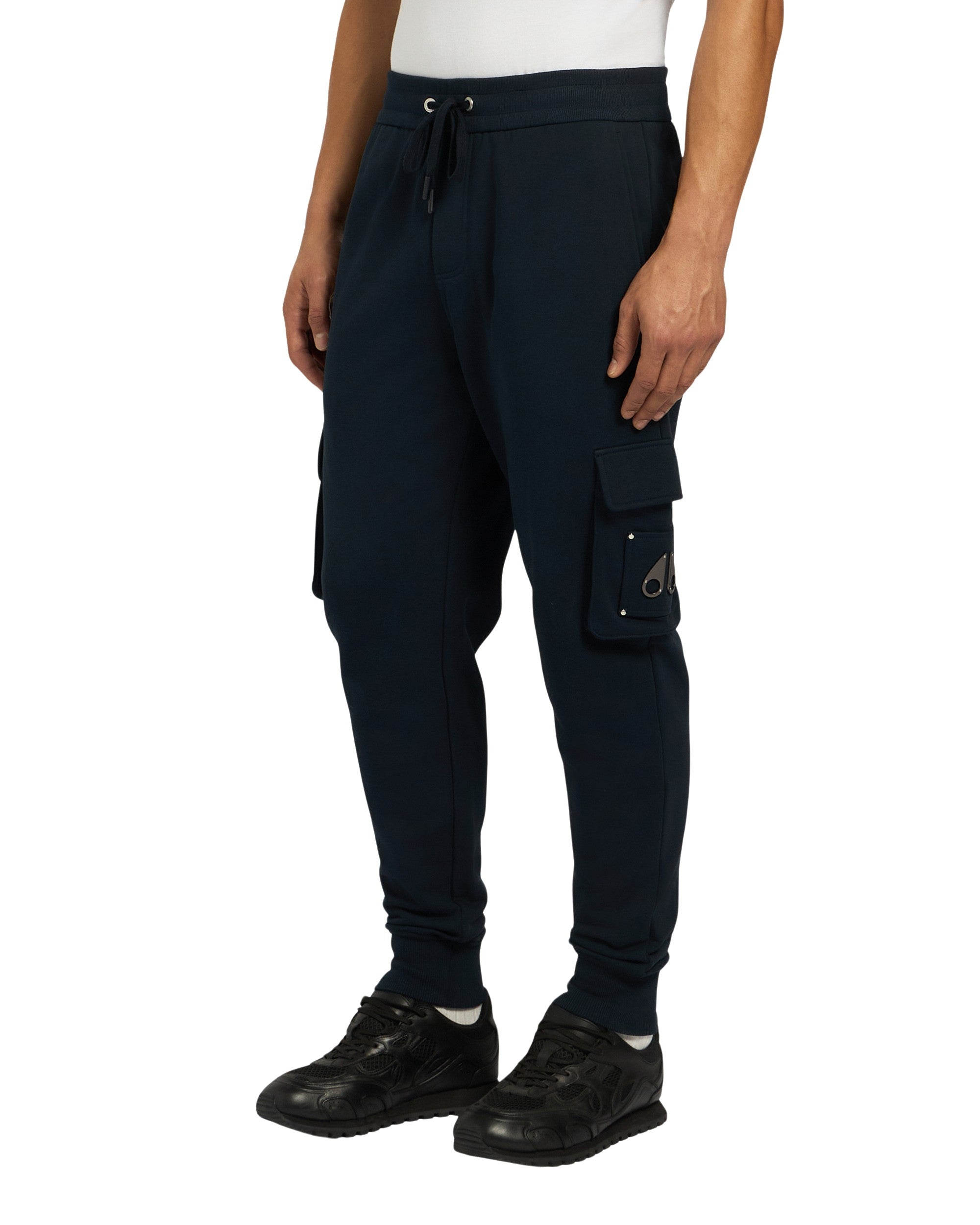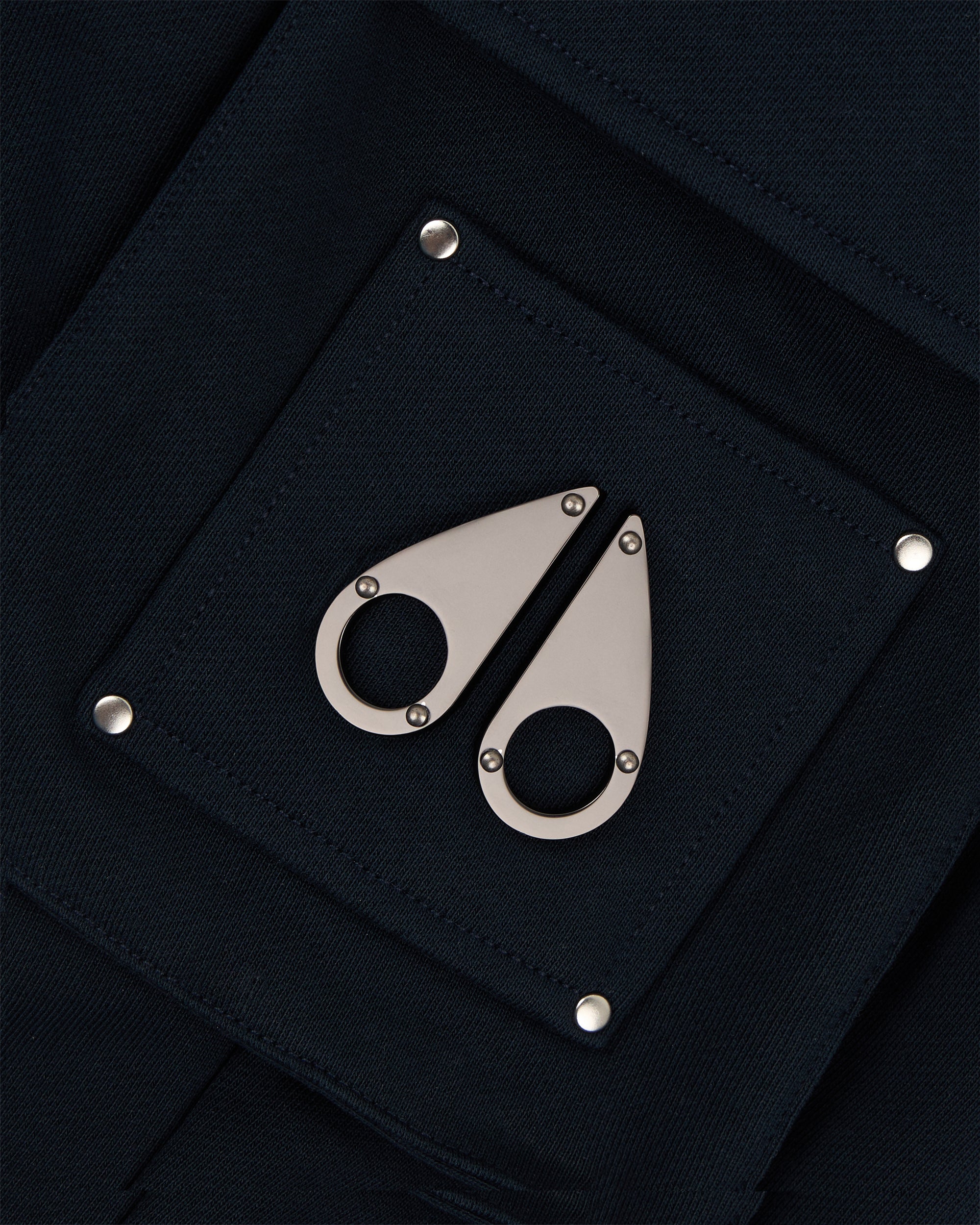 The Hartsfield Cargo Jogger offers comfort and style in one. Crafted from soft cotton French terry, it boasts a relaxed silhouette with cargo pockets adorned with a metal Moose Knuckles logo. Additional pockets at the waist and back add a utilitarian touch to this laid-back jogger.