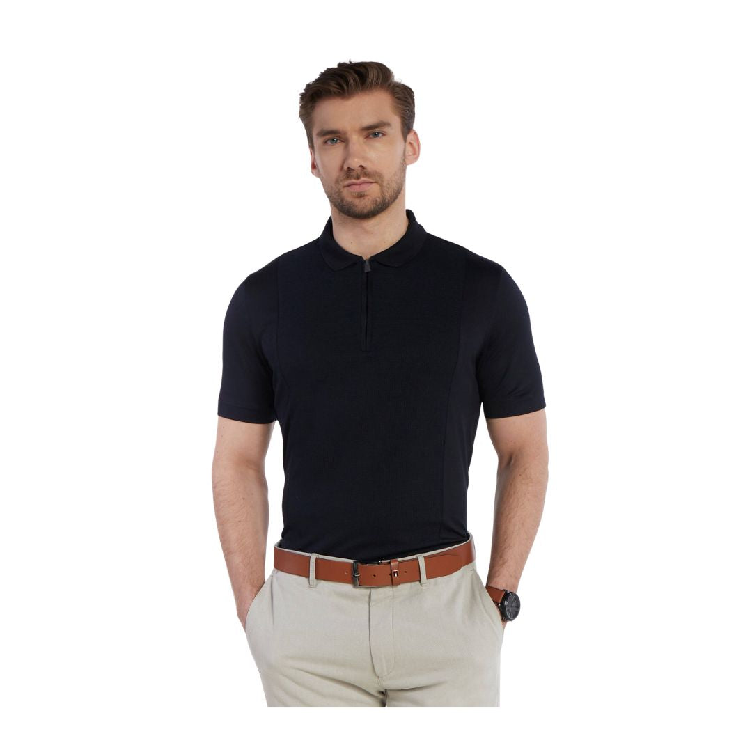 Introducing a stylish performance polo shirt from BOSS Menswear. This modern polo features a zipped placket and is crafted from a premium blend of mercerised and air-mesh stretch-cotton jersey for breathability and flexibility. The short sleeves and casual regular fit ensure comfort and ease of movement, making it perfect for both active days and relaxed outings. With its sleek design and high-quality materials, this polo is a versatile addition to any man's wardrobe, combining practicality with contemporary style.