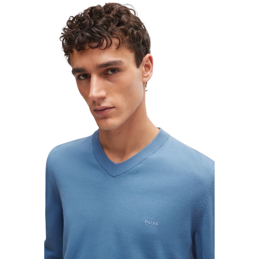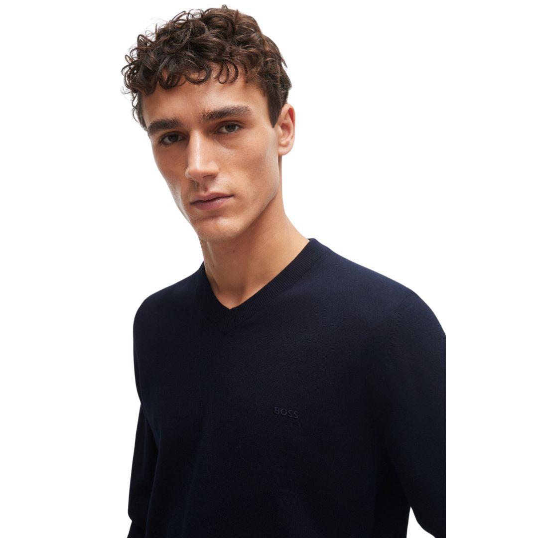 The Pacello-L regular-fit knitted sweater by BOSS Menswear features a V-neckline and an embroidered logo on the chest. As part of our BETTER BOSS collection, it is crafted from at least 60% sustainable materials. Made with organic cotton, it adheres to strict standards, avoiding synthetic fertilizers, pesticides, and genetically modified seeds.