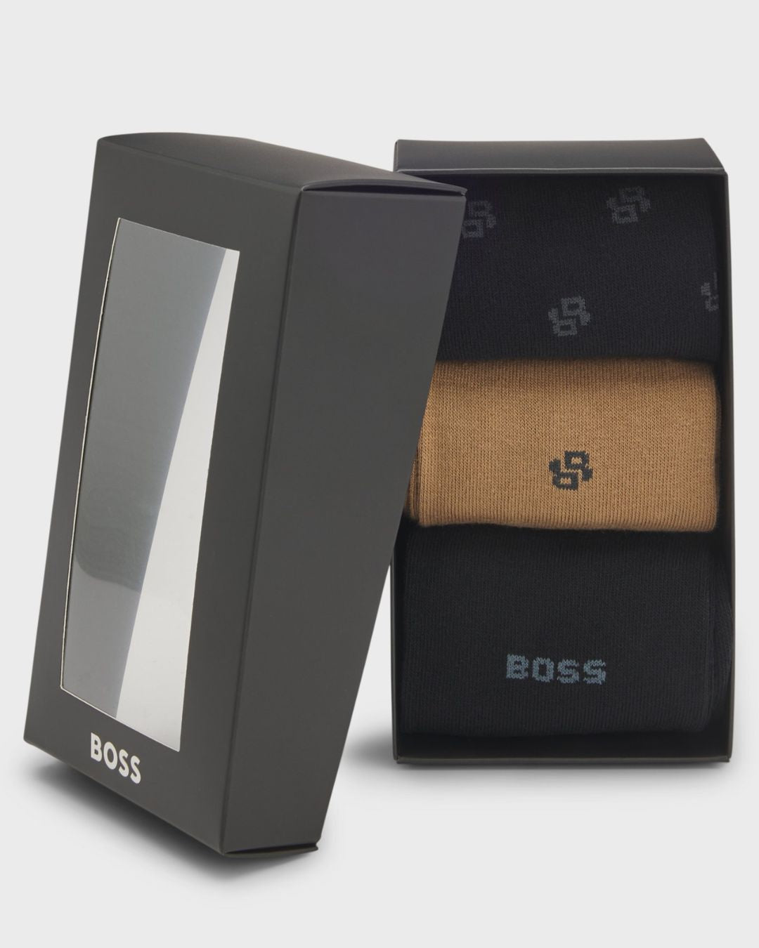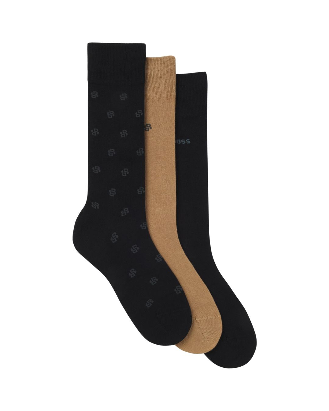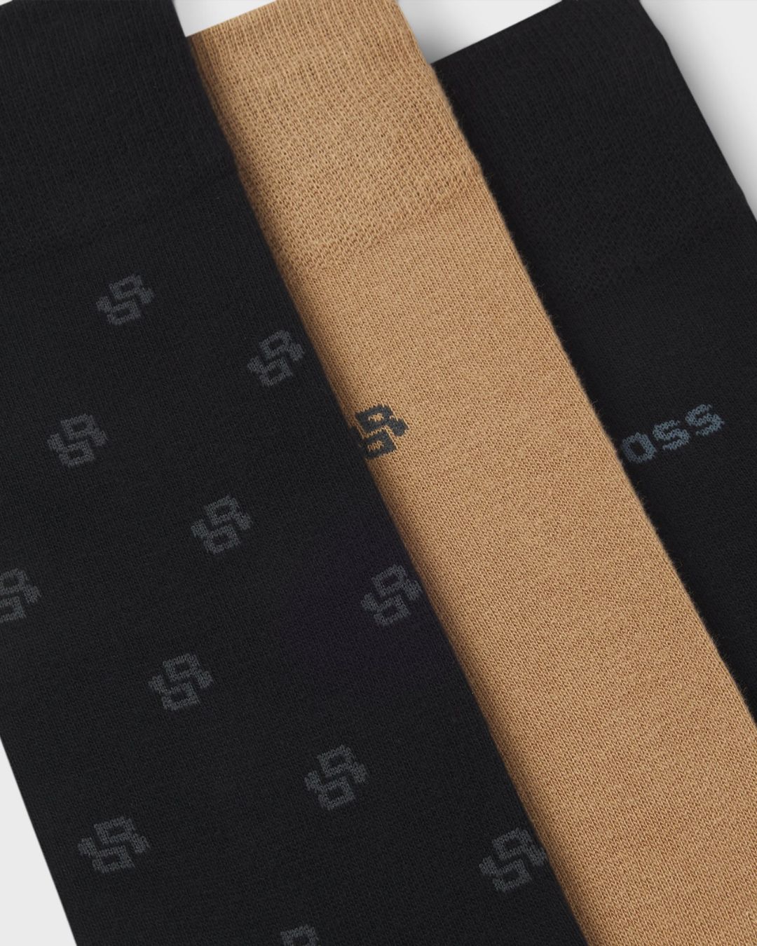 A set of three regular-length socks by BOSS Menswear, crafted from cotton-rich stretch yarn for everyday comfort. Featuring subtle logo and monogram details. Made with at least 60% responsibly sourced materials.