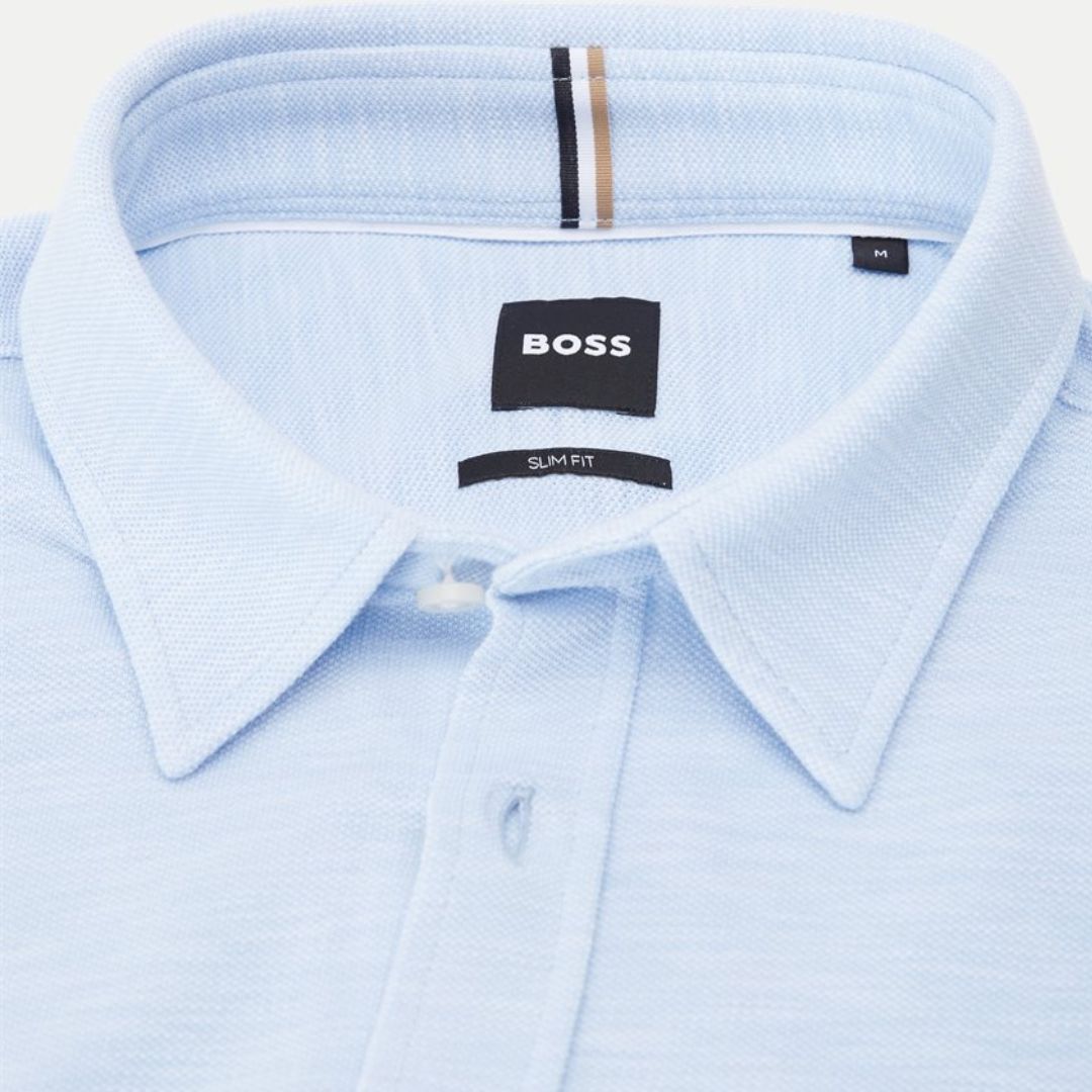 Introducing a stylish shirt from BOSS, expertly crafted with a modern slim fit that accentuates your silhouette. This shirt boasts a sophisticated textured pattern, adding depth and elegance to your ensemble. The carefully designed fit ensures comfort while maintaining a sharp appearance. Versatile and refined, this shirt is perfect for both formal and casual occasions, making it an essential addition to your wardrobe. Whether paired with tailored trousers for a business meeting or styled with jeans for a night out, this shirt promises to keep you looking polished and confident in any setting.