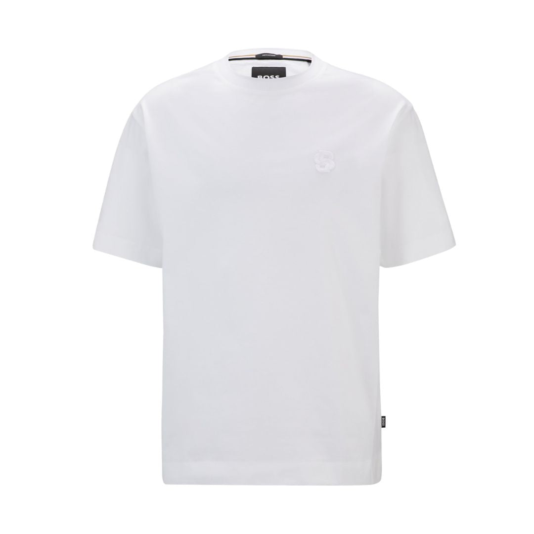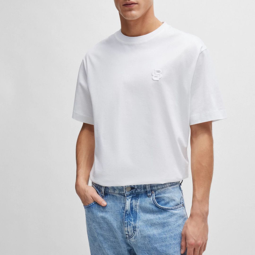 Introducing a short-sleeved T-shirt by BOSS Menswear, designed with an oversized fit in mercerised jersey. Adorned with a double monogram at the chest, this T-shirt embodies the confidence and statement-making spirit of a true BOSS. As part of our BETTER BOSS collection, this product is crafted with at least 60% better raw materials, featuring organic cotton grown without synthetic fertilisers, pesticides, or genetically modified seeds.