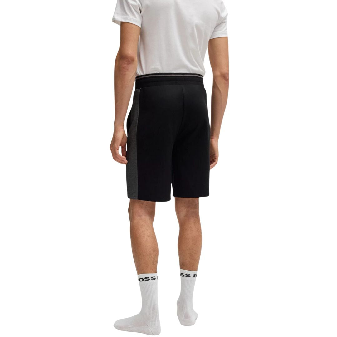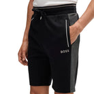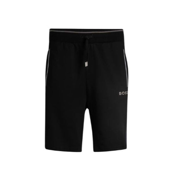 Relax in style with these BOSS loungewear shorts, designed for both comfort and versatility. Featuring an elasticated waistband with adjustable drawstring, twin side pockets for convenience, and a subtle embroidered logo on the leg. Finished with contrast tipping down the sides, these men's shorts are a sleek addition to your off-duty wardrobe.