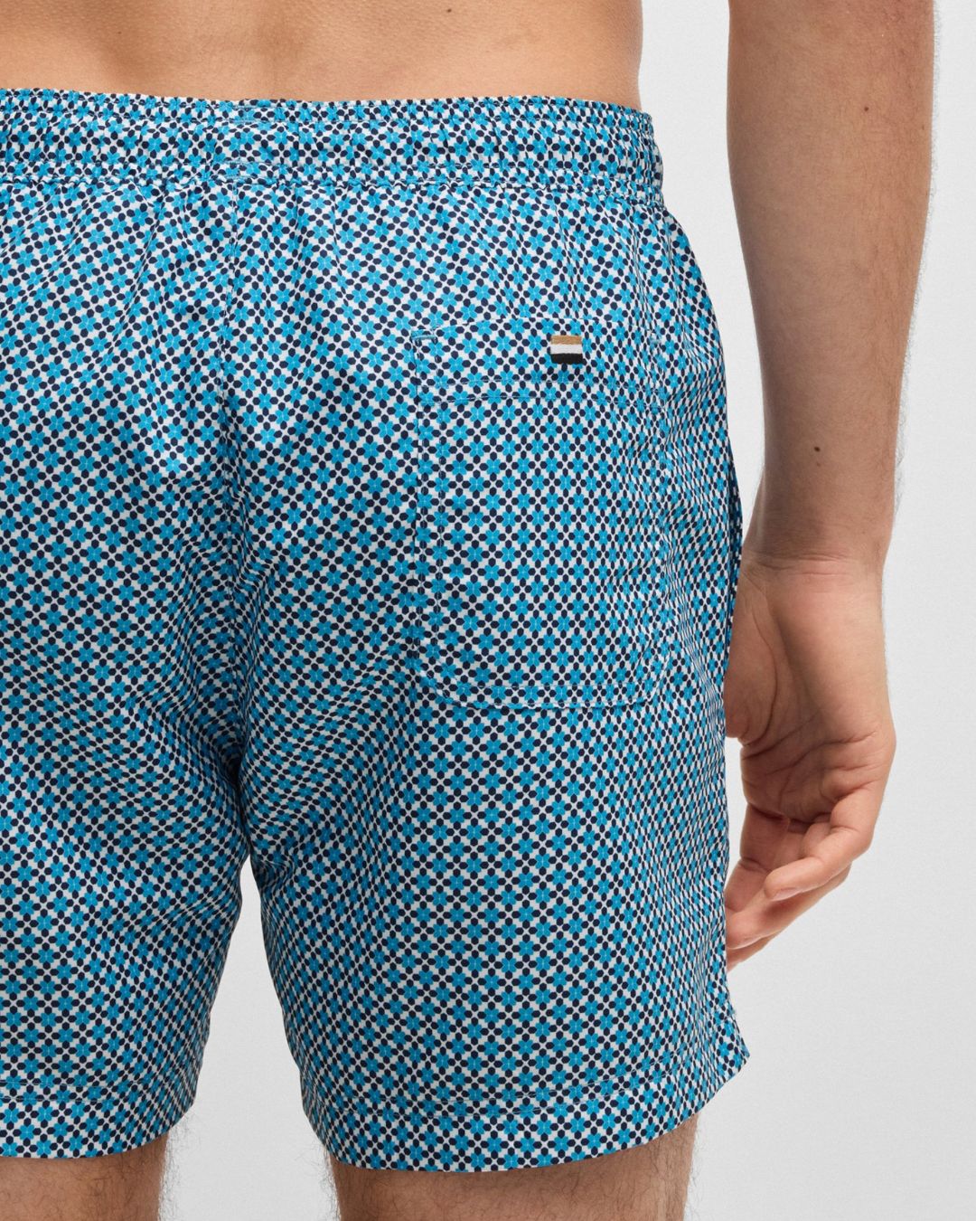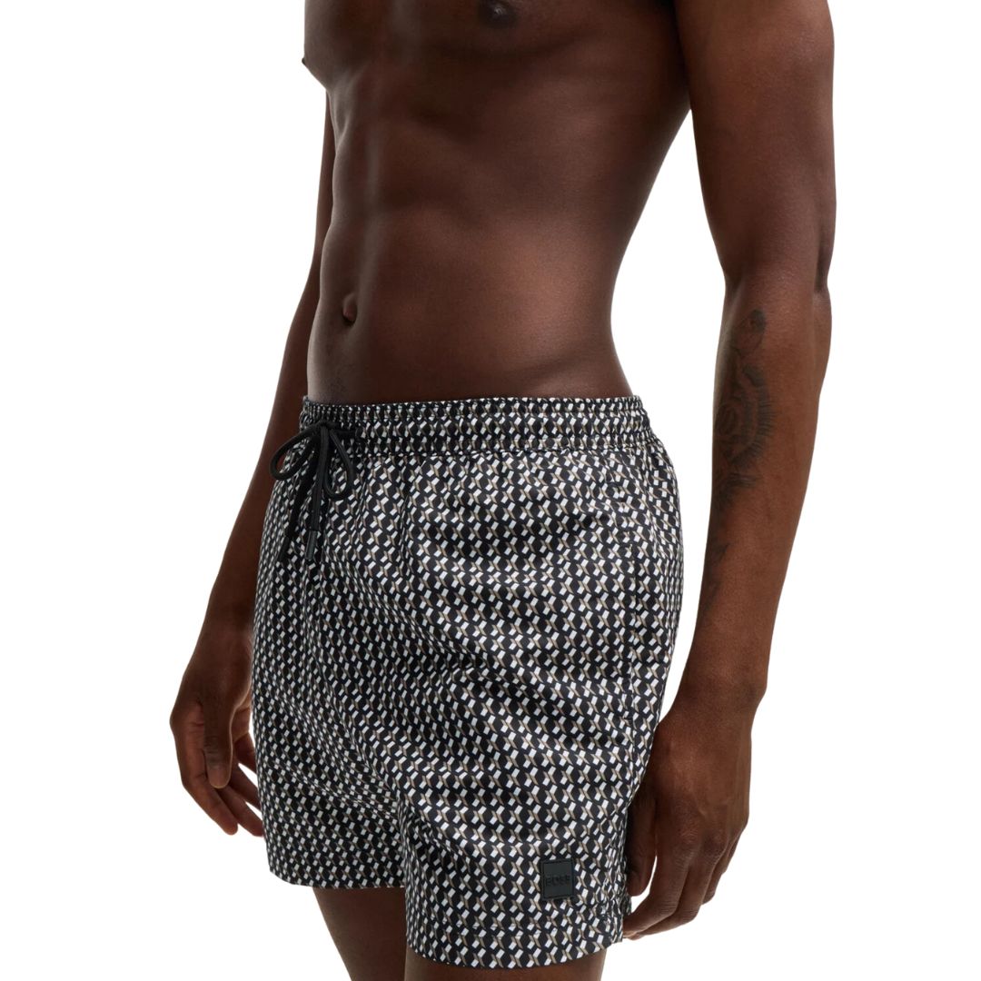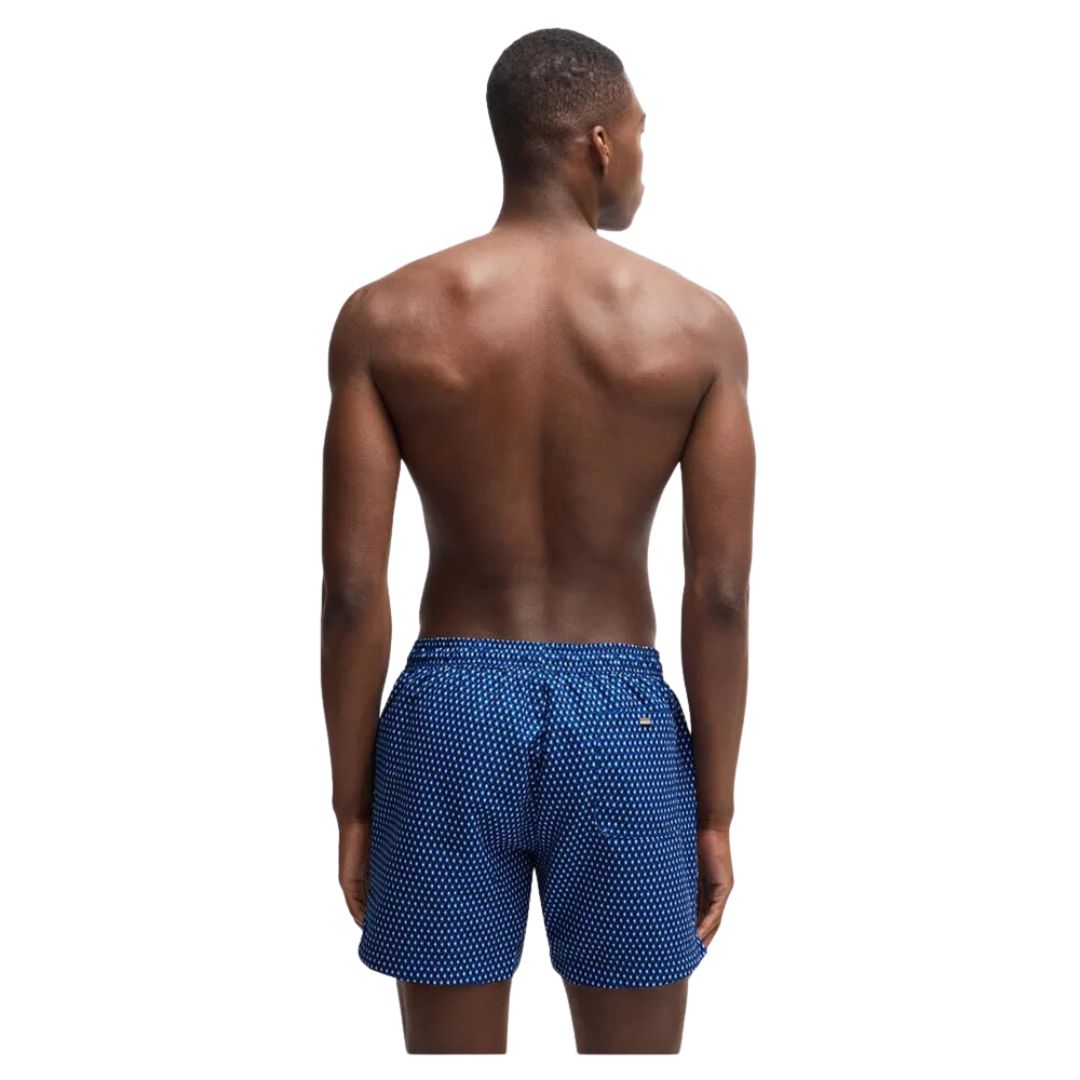 Discover the refined elegance of BOSS swim shorts, adorned with a stylish all-over seasonal print. Designed for comfort with a full lining, these swim shorts are equipped with an adjustable drawcord and a signature logo label for a distinguished finish. Crafted in part from recycled polyester, BOSS is committed to sustainability by using materials derived from pre- and post-consumer textile waste, aiming to reduce dependence on PET bottle polyester. Elevate your swimwear with eco-conscious sophistication.