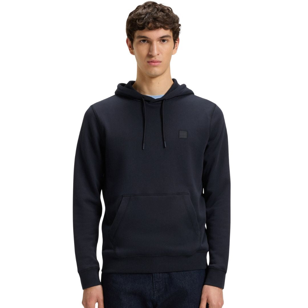 Add a distinctive touch to your casual wardrobe with this BOSS Menswear hoodie, featuring a tonal logo patch for subtle branding. Crafted from soft cotton terry, it offers a comfortable regular fit with a classic hood, long sleeves, and a standard length—perfect for relaxed, everyday styling.
