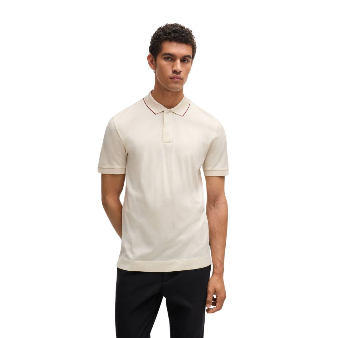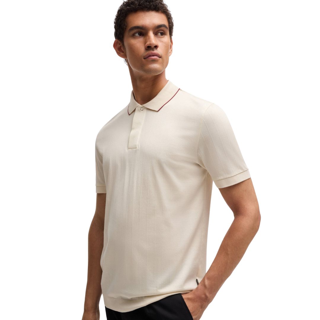 This sporty polo shirt from BOSS Menswear offers a regular fit and is crafted from super-soft cotton with a jacquard stripe. It features tipping on the collar and a concealed placket for a sleek finish. As part of the Porsche x BOSS capsule collection, it embodies the bold, dynamic spirit of BOSS, reflecting a sense of drive and determination.
