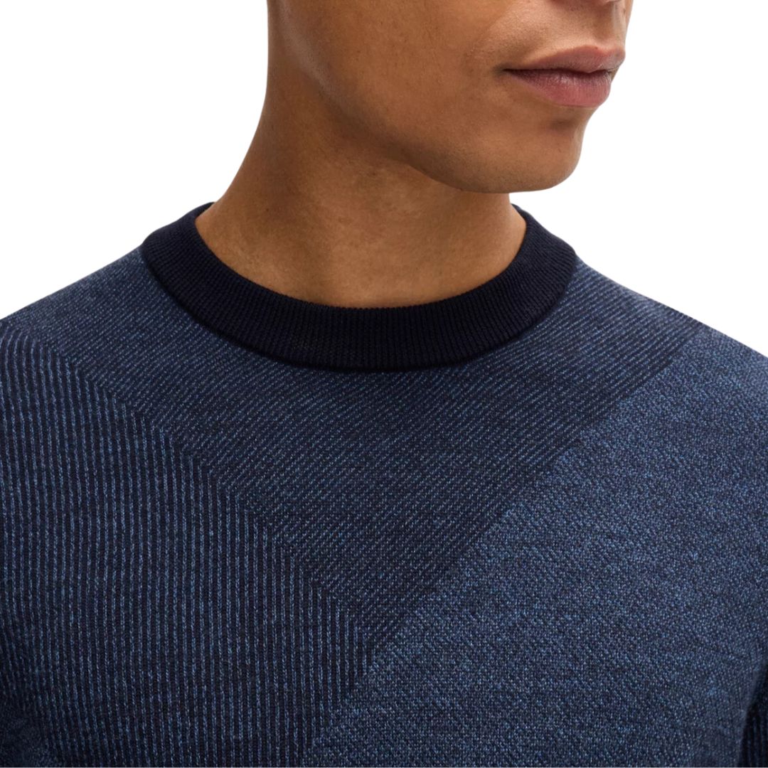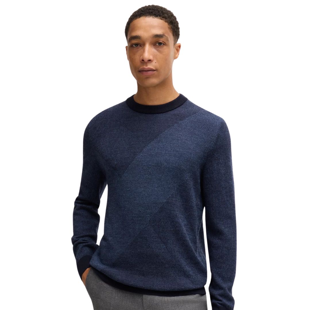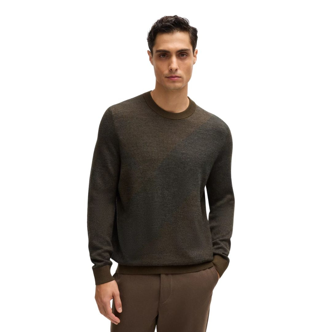 A crew-neck sweater by BOSS, knitted with solid and mouliné yarns. This regular-fit style features a two-tone jacquard pattern all over.