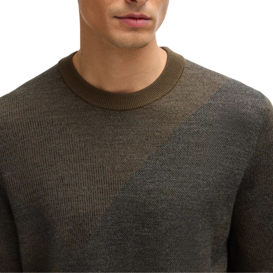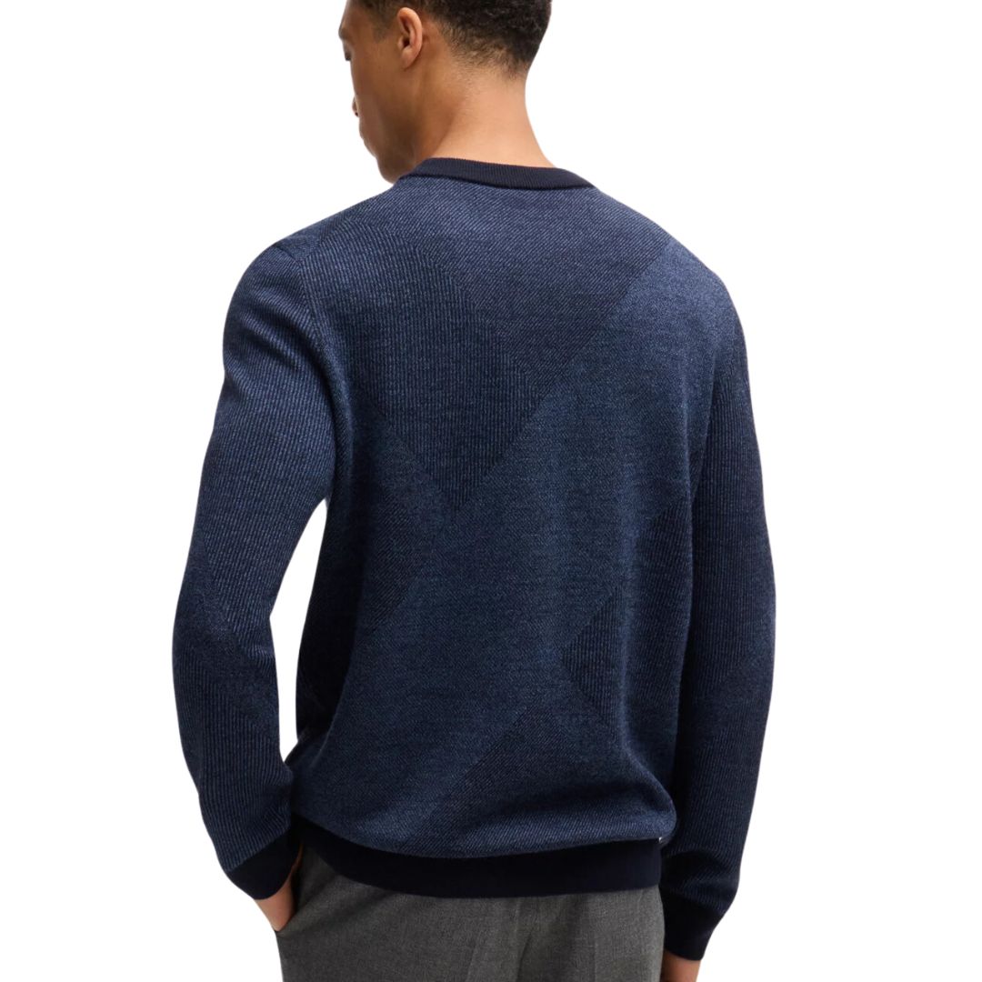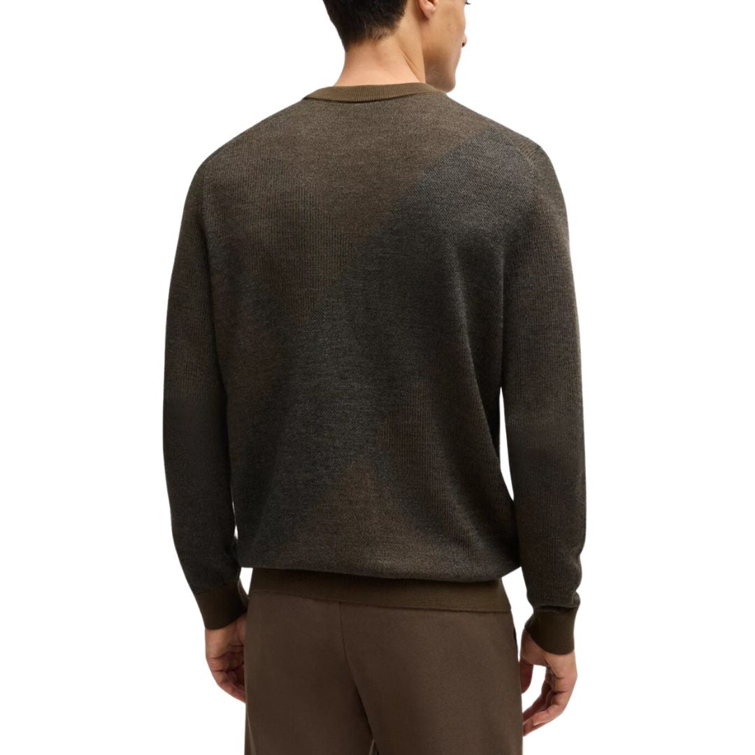 A crew-neck sweater by BOSS, knitted with solid and mouliné yarns. This regular-fit style features a two-tone jacquard pattern all over.