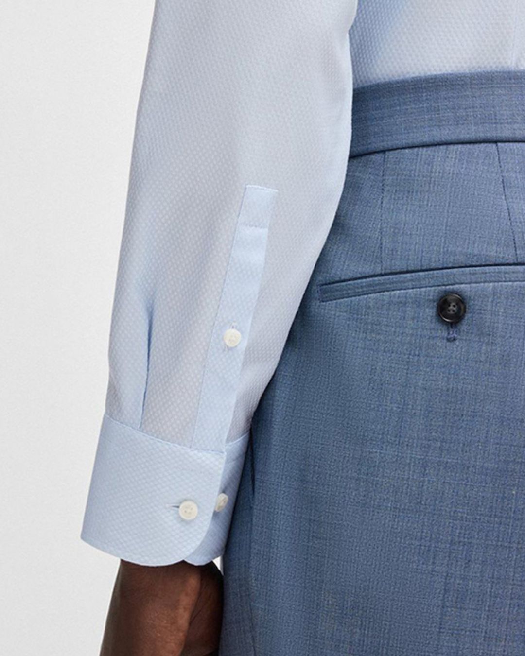 Elevate your smartwear with the BOSS H-HANK-Spread C1-222 Shirt. Expertly tailored in a slim fit, this shirt features a subtle textured weave that adds refined depth to its clean, modern silhouette. The crisp spread collar and buttoned cuffs offer timeless appeal, making it perfect for both office wear and formal occasions. Crafted from premium cotton for breathable comfort and a polished finish, this shirt brings together elegance and versatility in one effortlessly stylish piece.