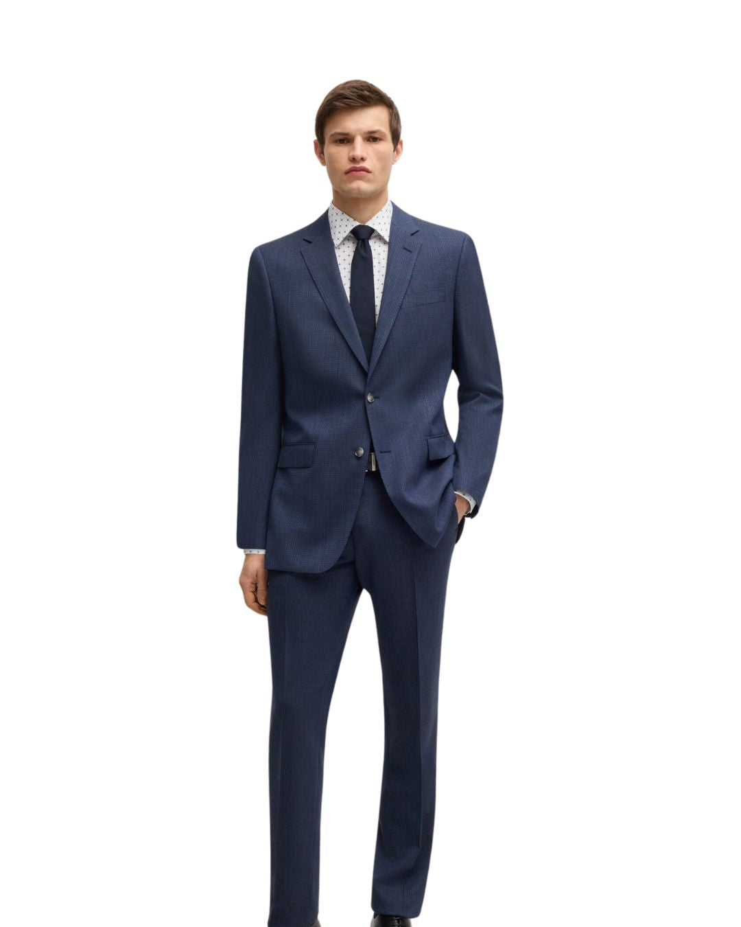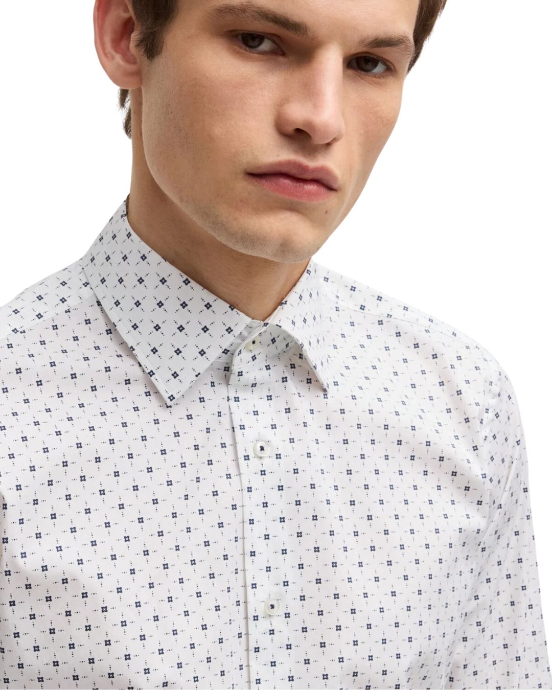 Create a sharp business look with this BOSS Menswear shirt, featuring a contemporary motif printed on cotton with added stretch for comfort. Its classic regular fit ensures a timeless silhouette.
