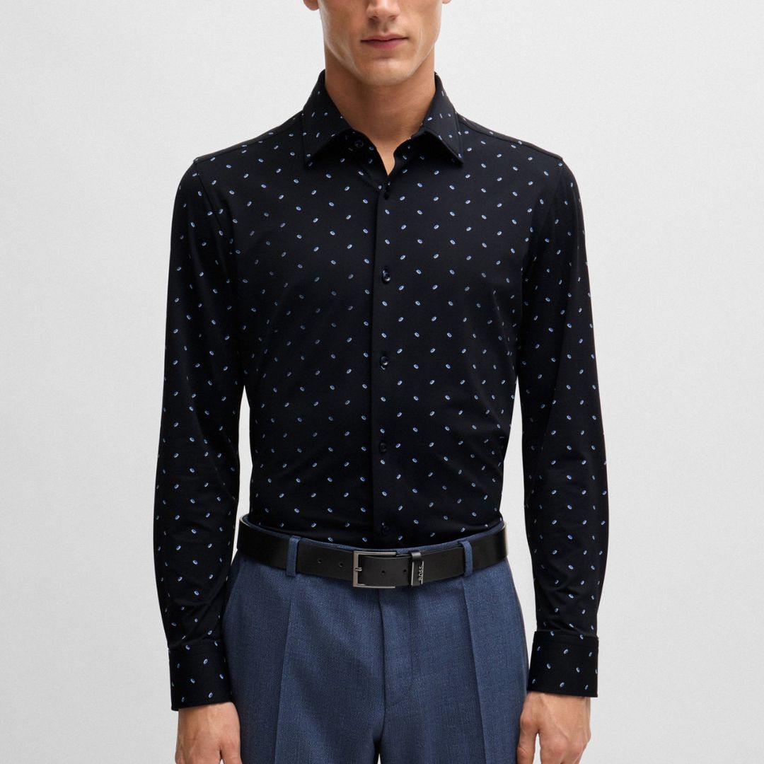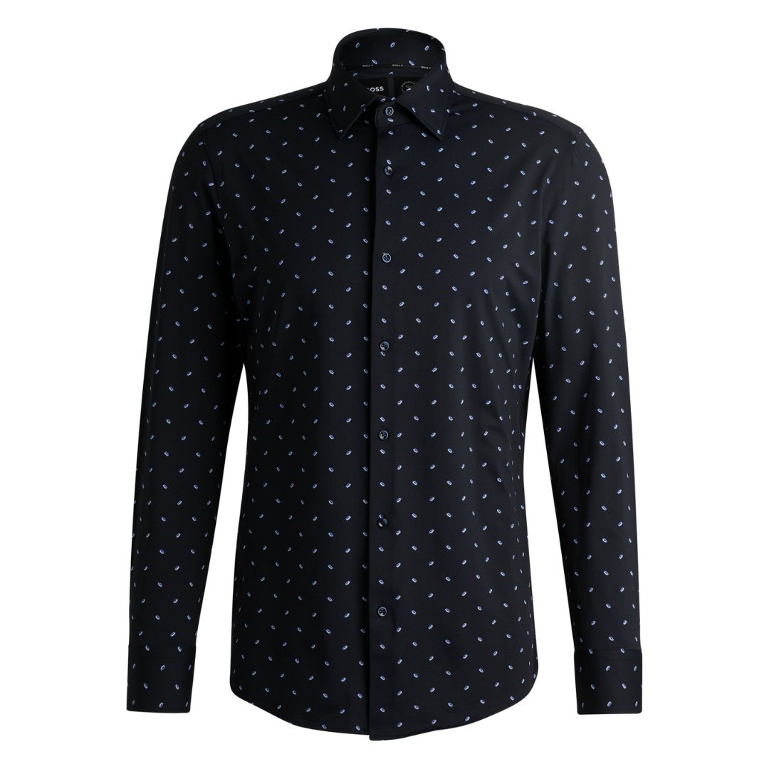 A characterful shirt crafted in performance-stretch material by BOSS. This piece is tailored to a slim fit and printed with a modern motif. This product is created with polyamide made from pre- and post-consumer textile waste or industrial fishing nets. The aim of using materials is to save valuable resources.