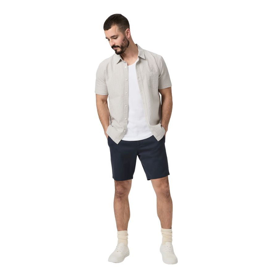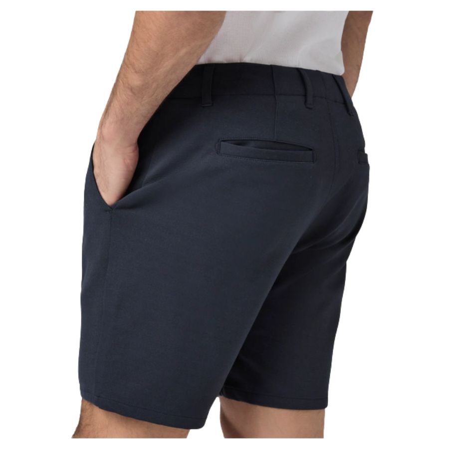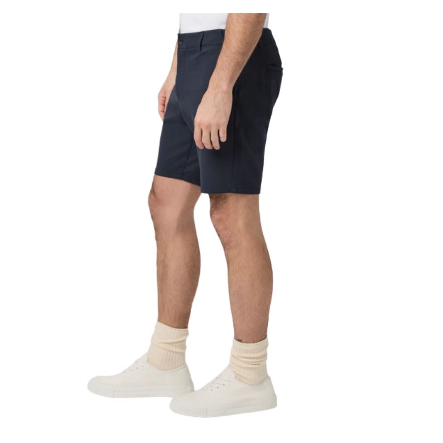 Elevate your casual wardrobe with Rickson, the trouser short that seamlessly bridges polished and comfortable. Crafted in dark navy from our innovative transcend knit performance hybrid fabric, this piece features three super stretch fibers engineered for all-day comfort without compromising on style. The tailored silhouette is enhanced by tonal threading, side-entry trouser pockets, rubberised buttons, and back welt pockets—details that set it apart from ordinary shorts. Whether paired with a crisp button-down for a refined look or your favourite tee for relaxed sophistication, Rickson delivers the versatility and quality you deserve.