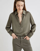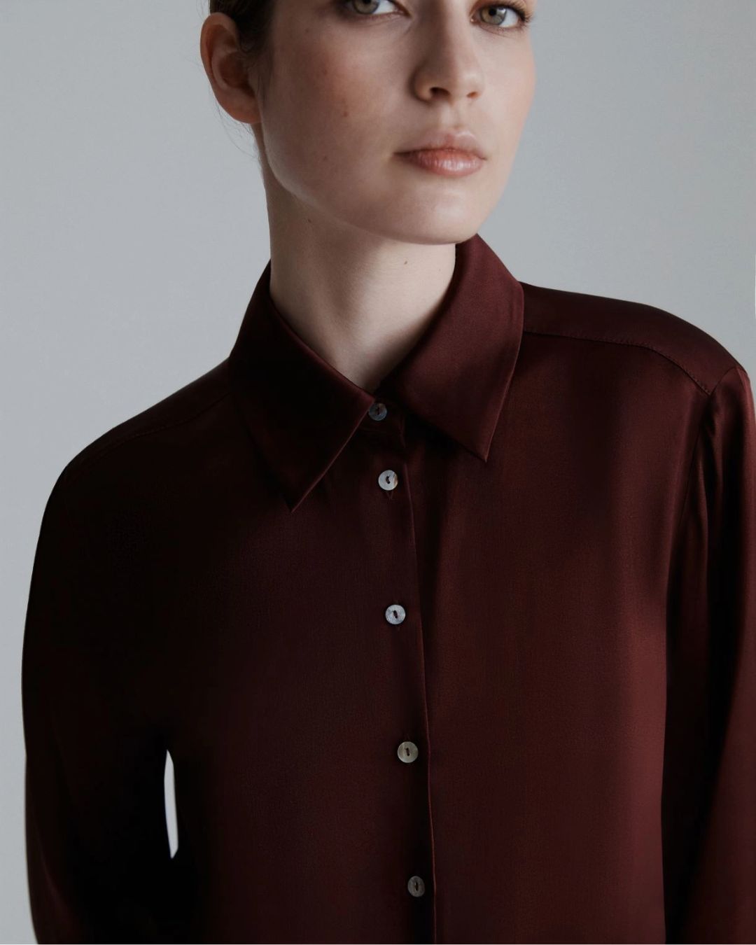 This silk-blend satin shirt brings effortless sophistication to any outfit. Designed in a straight fit with a classic shirt collar, long sleeves, and a button-down front, it pairs beautifully with everything from fluffy sweaters to tailored trousers for a look that’s both urban and refined.